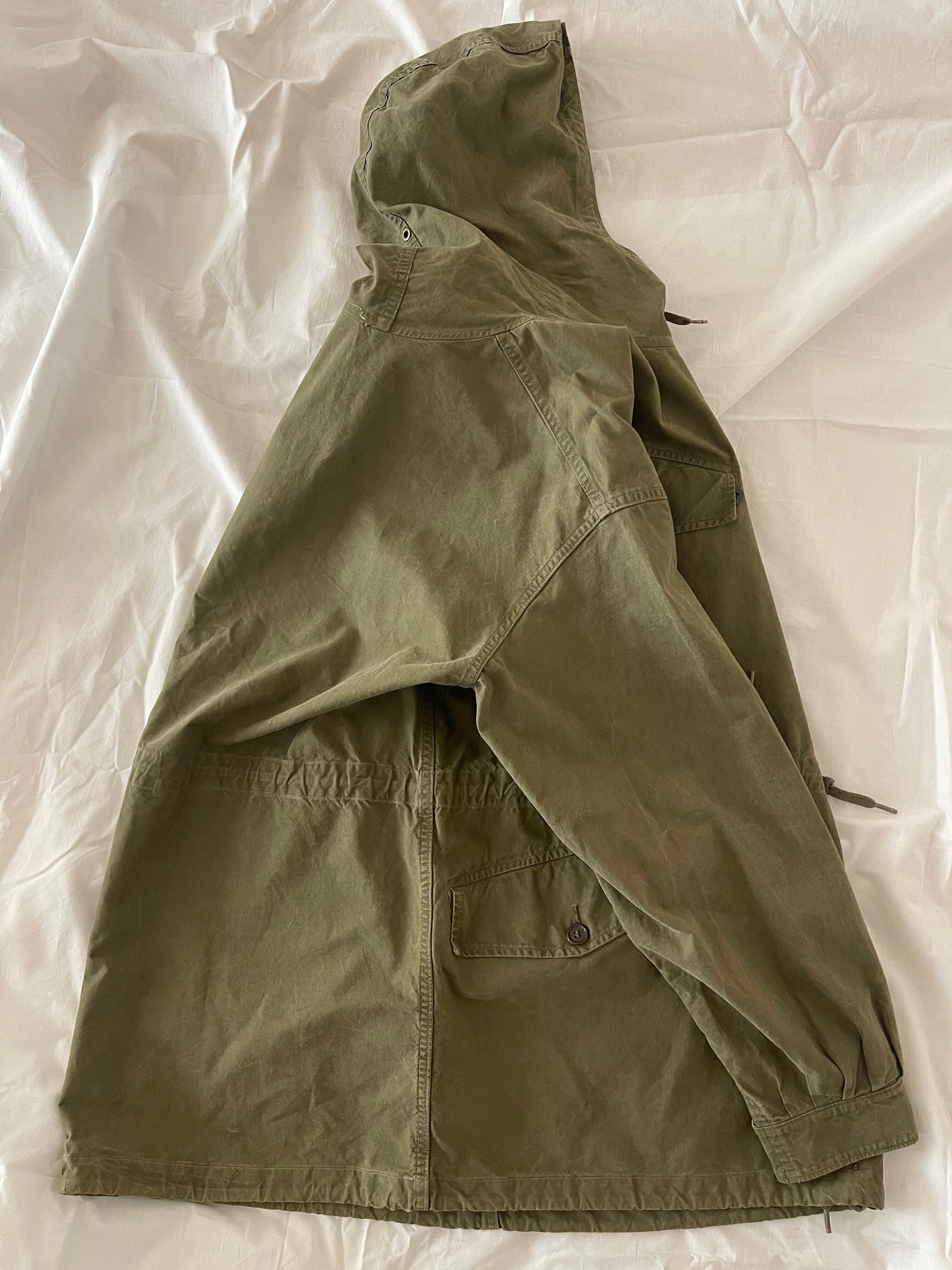 ボタン留めのフラップポケット、ウエストにもドローコードがあってシルエットに変化をつけることも出来ます。