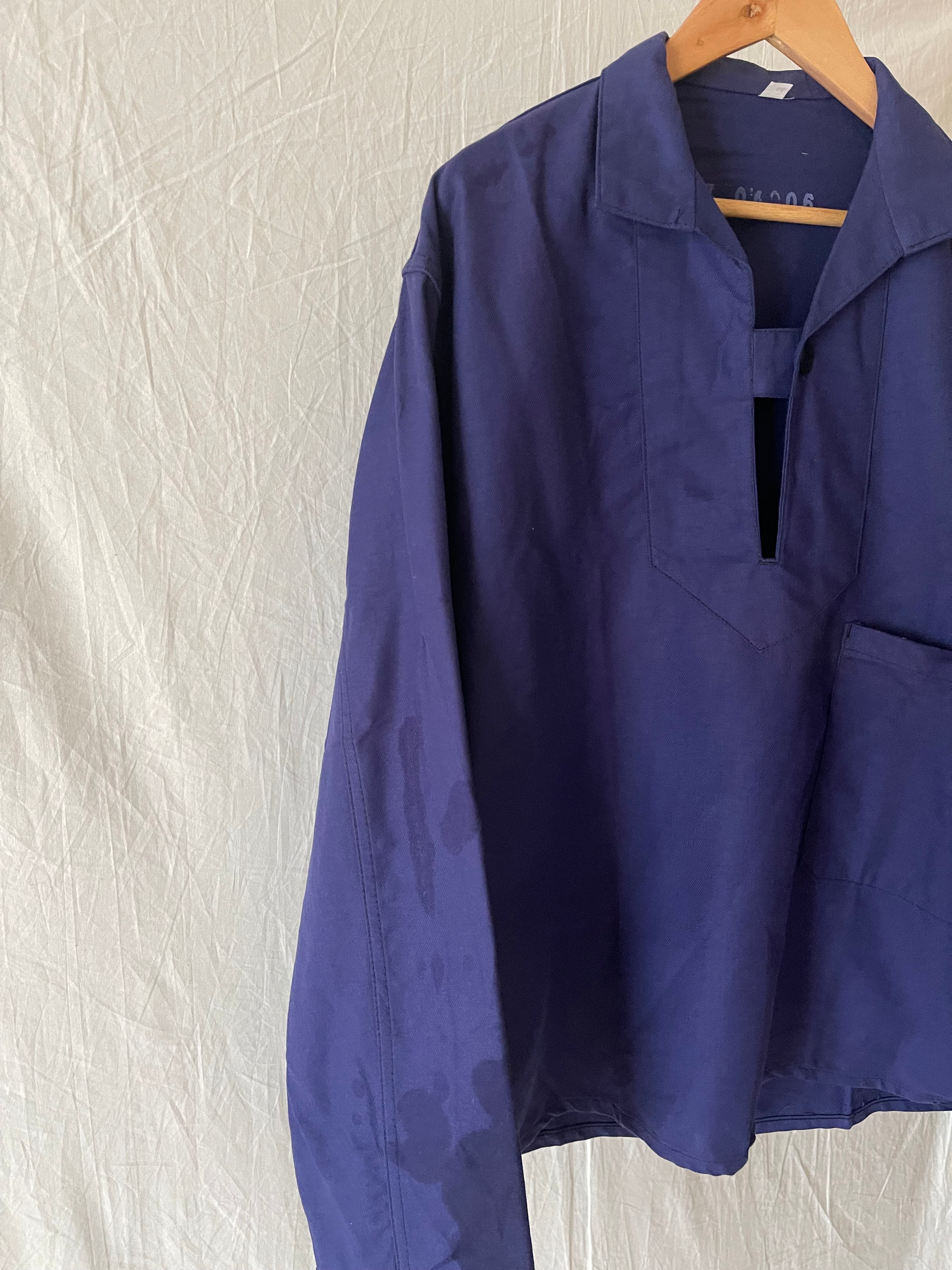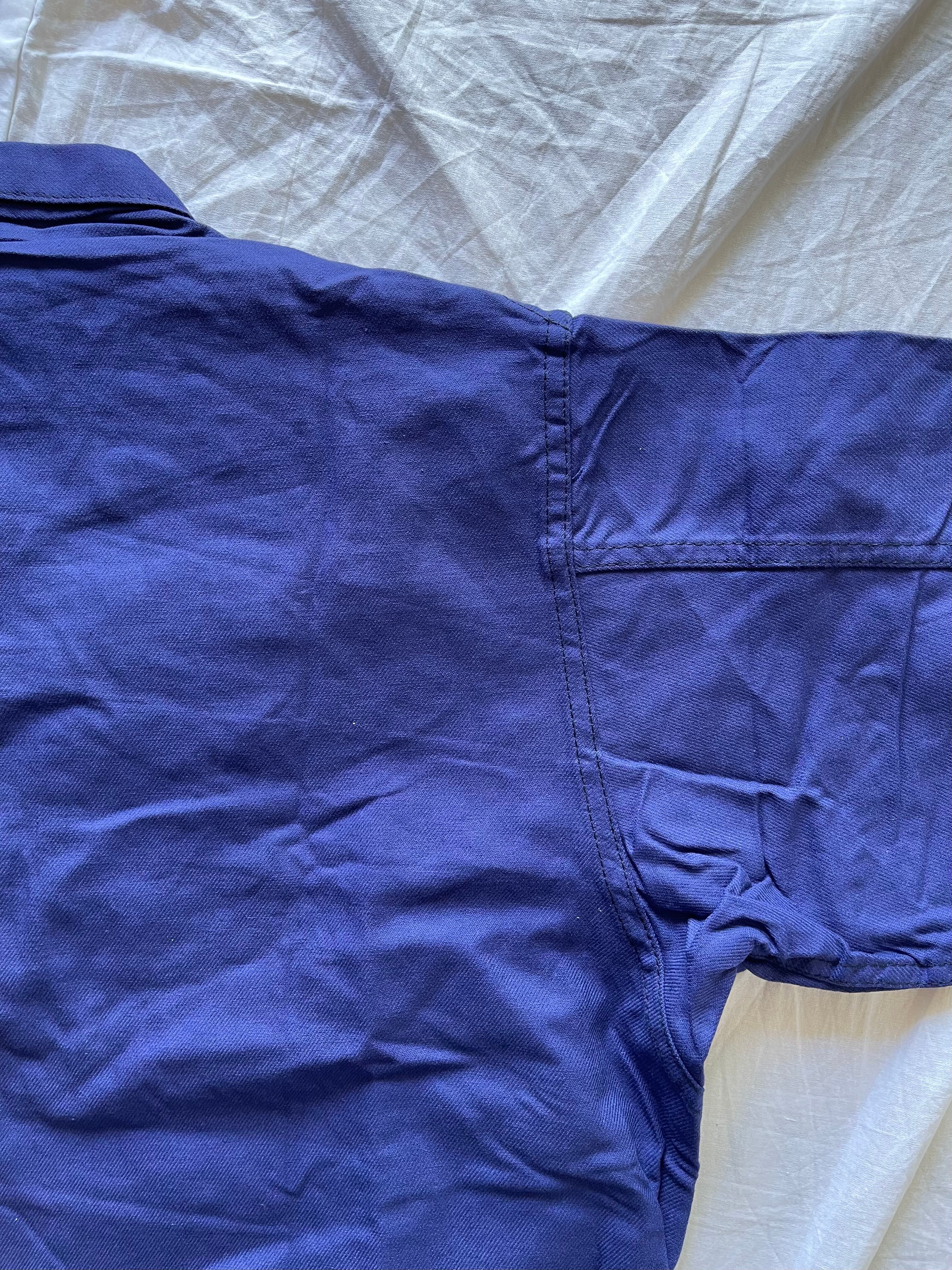 ブルーの色が鮮やかなスモックになります。生地も薄めで春や夏向けのスモックではないでしょうか。