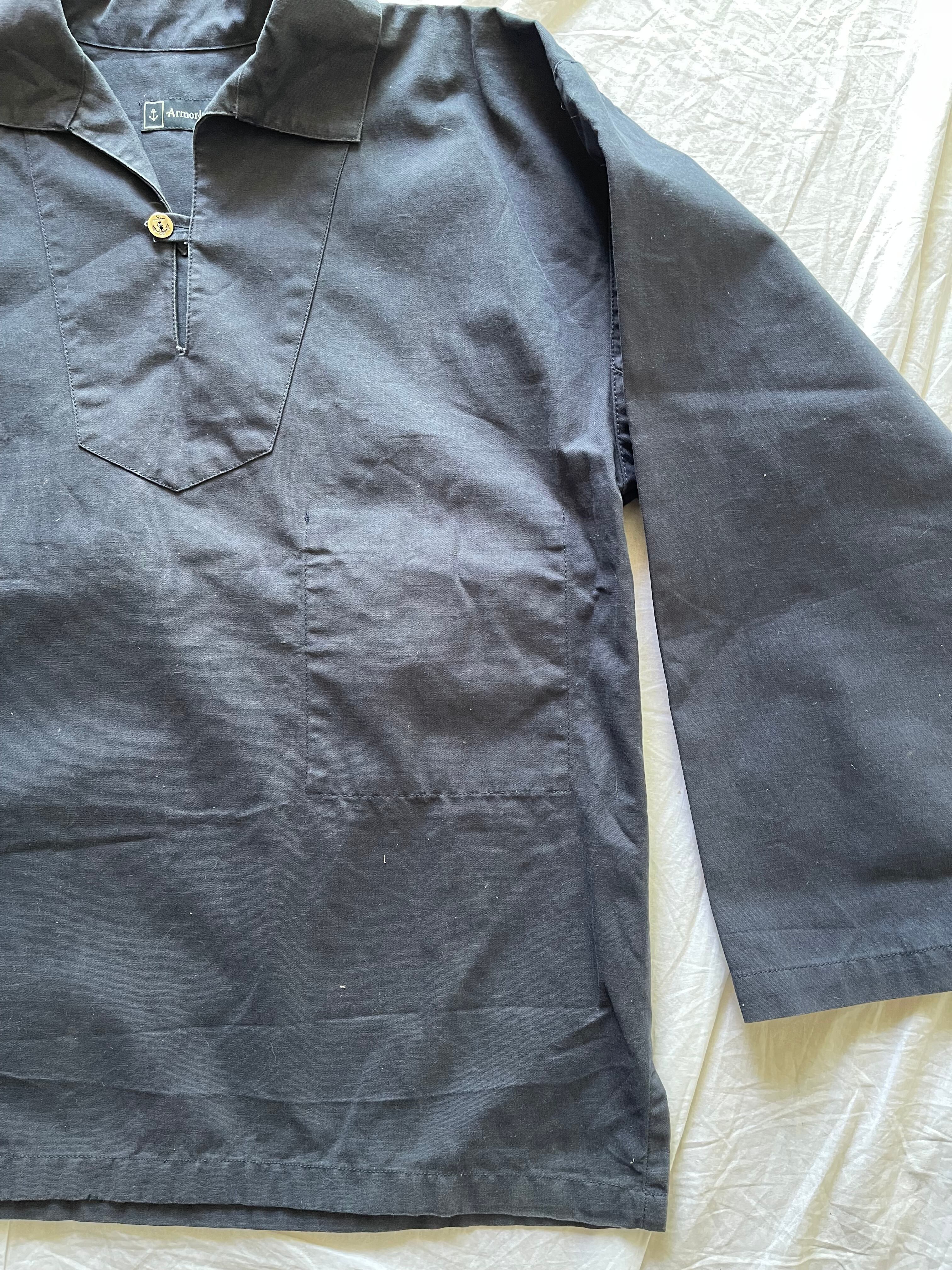 こちらはありそうでなかなか無い珍しい深いネイビーカラーです。船の上で邪魔にならないようにポケットは内側に一つの仕様。