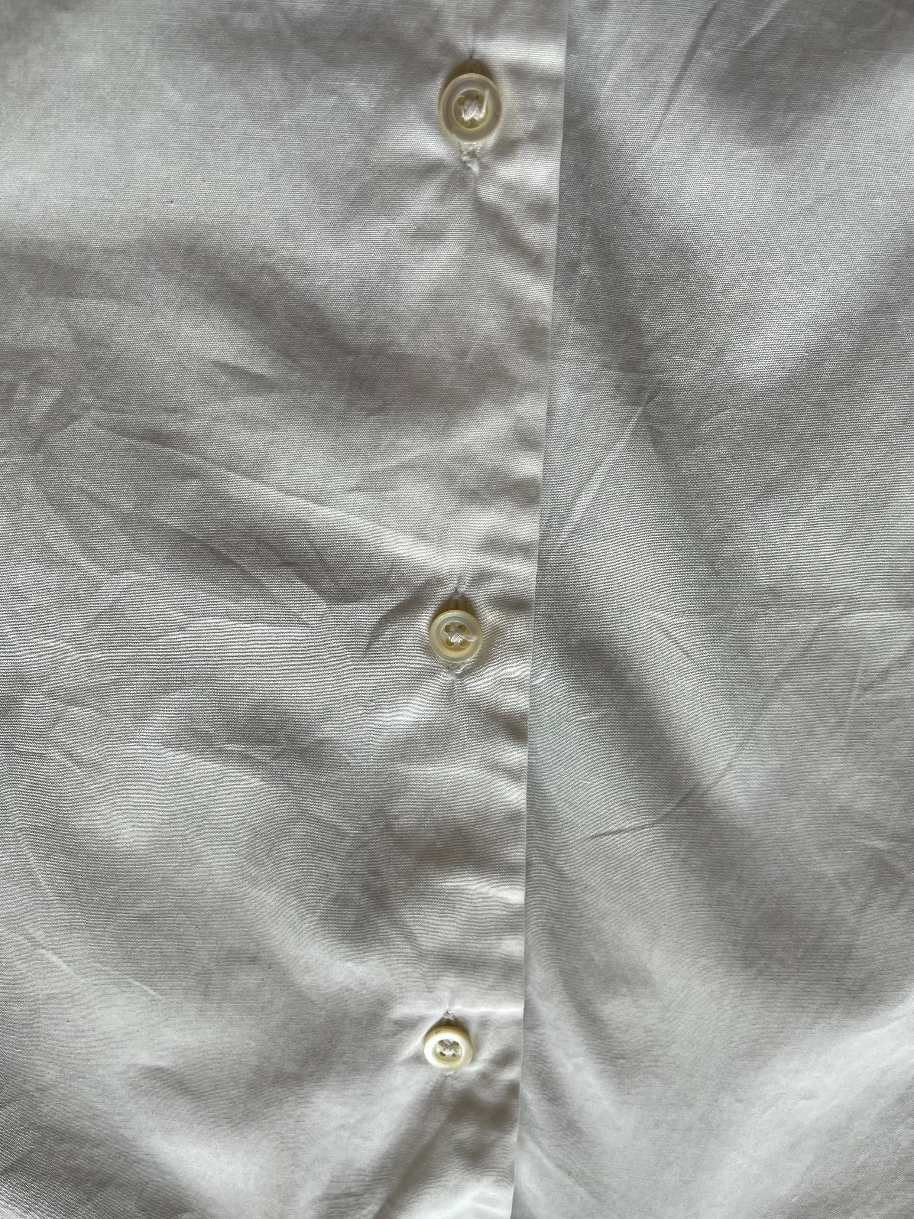 古いディテールで襟の形も可愛らしい。ボタンも白シャツには映える古いボタン。
