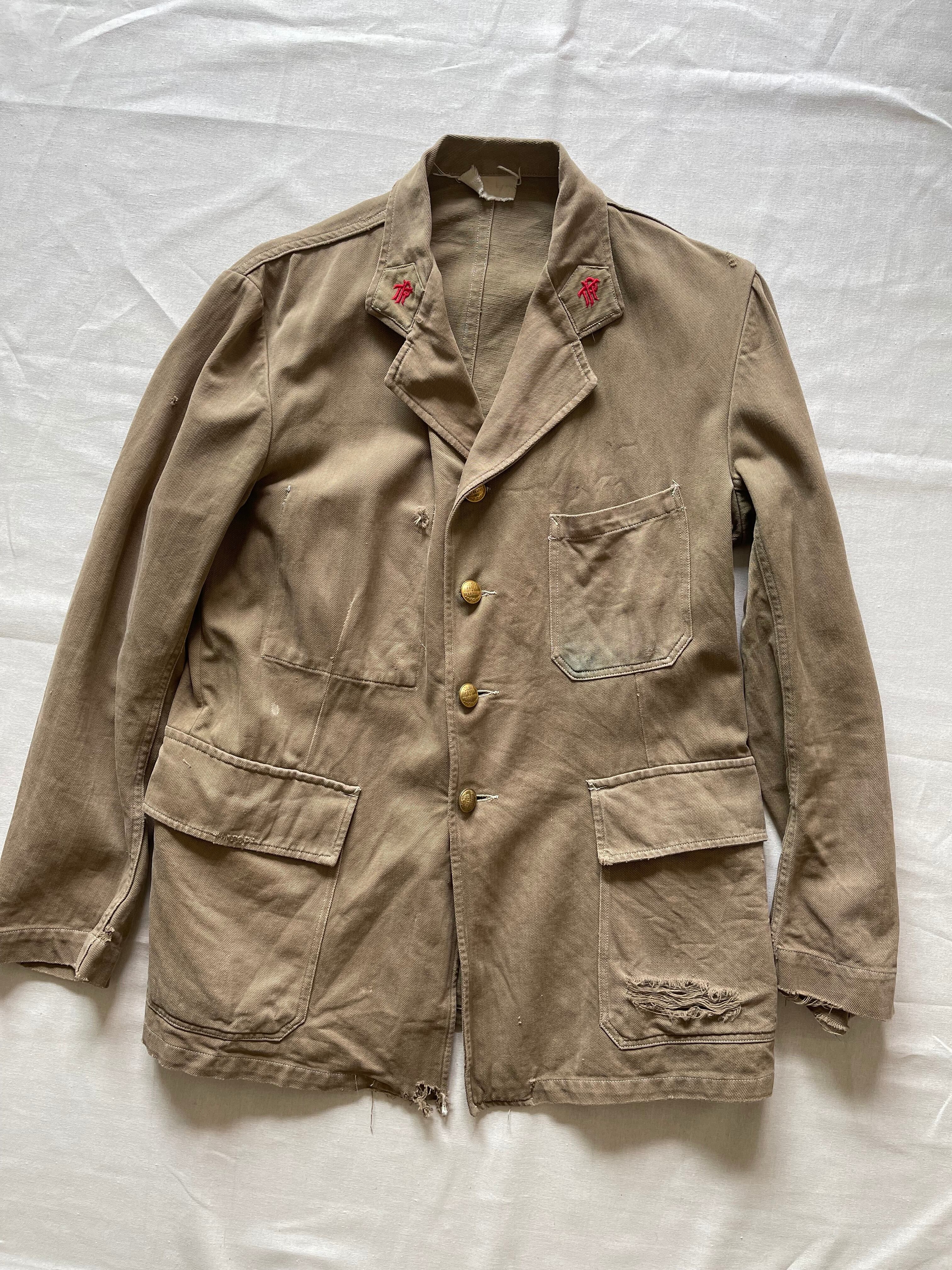 襟に付いた赤の刺繍、金色のボタン、見たらそれとわかる仕様です。