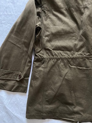 フロントは比翼式でフラップポケットが4つ、袖先にはサイズ調整のできるフラップがあります。