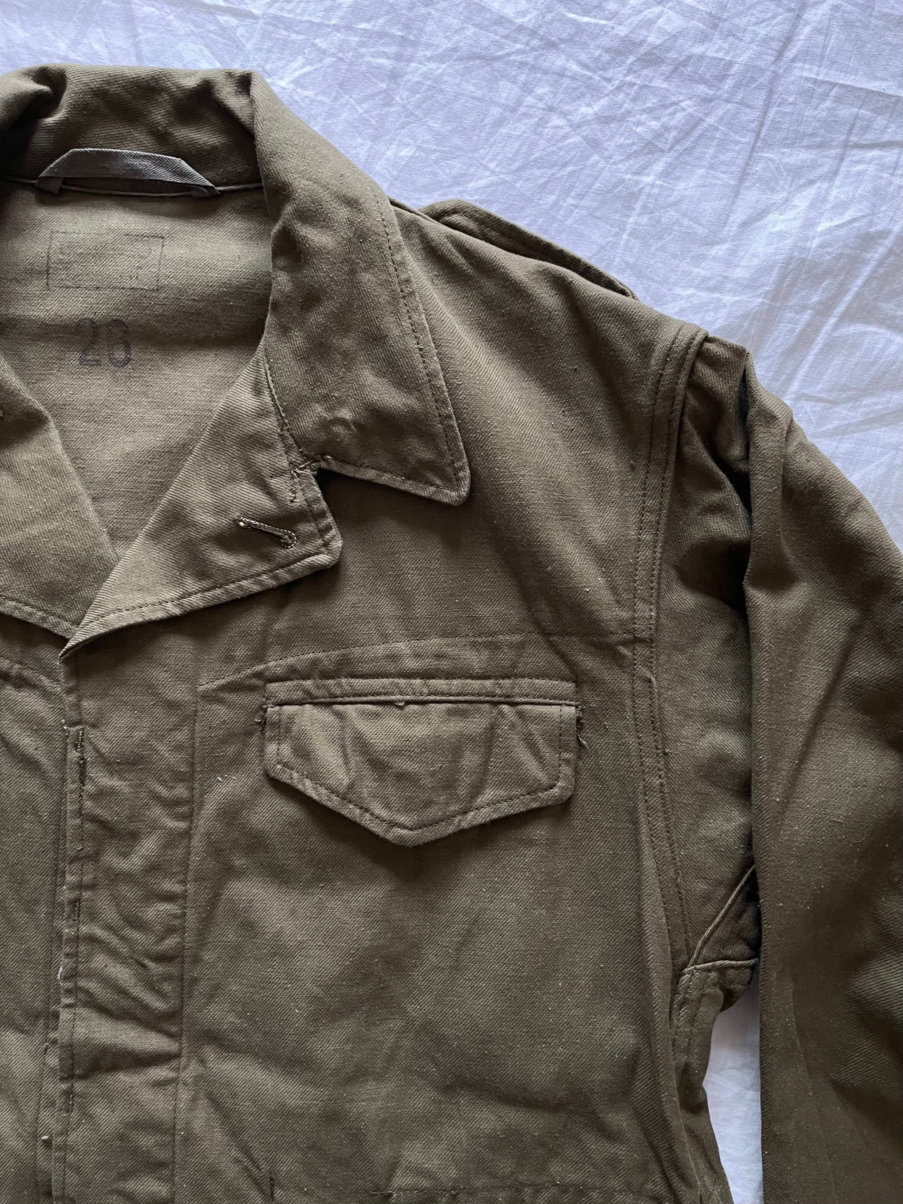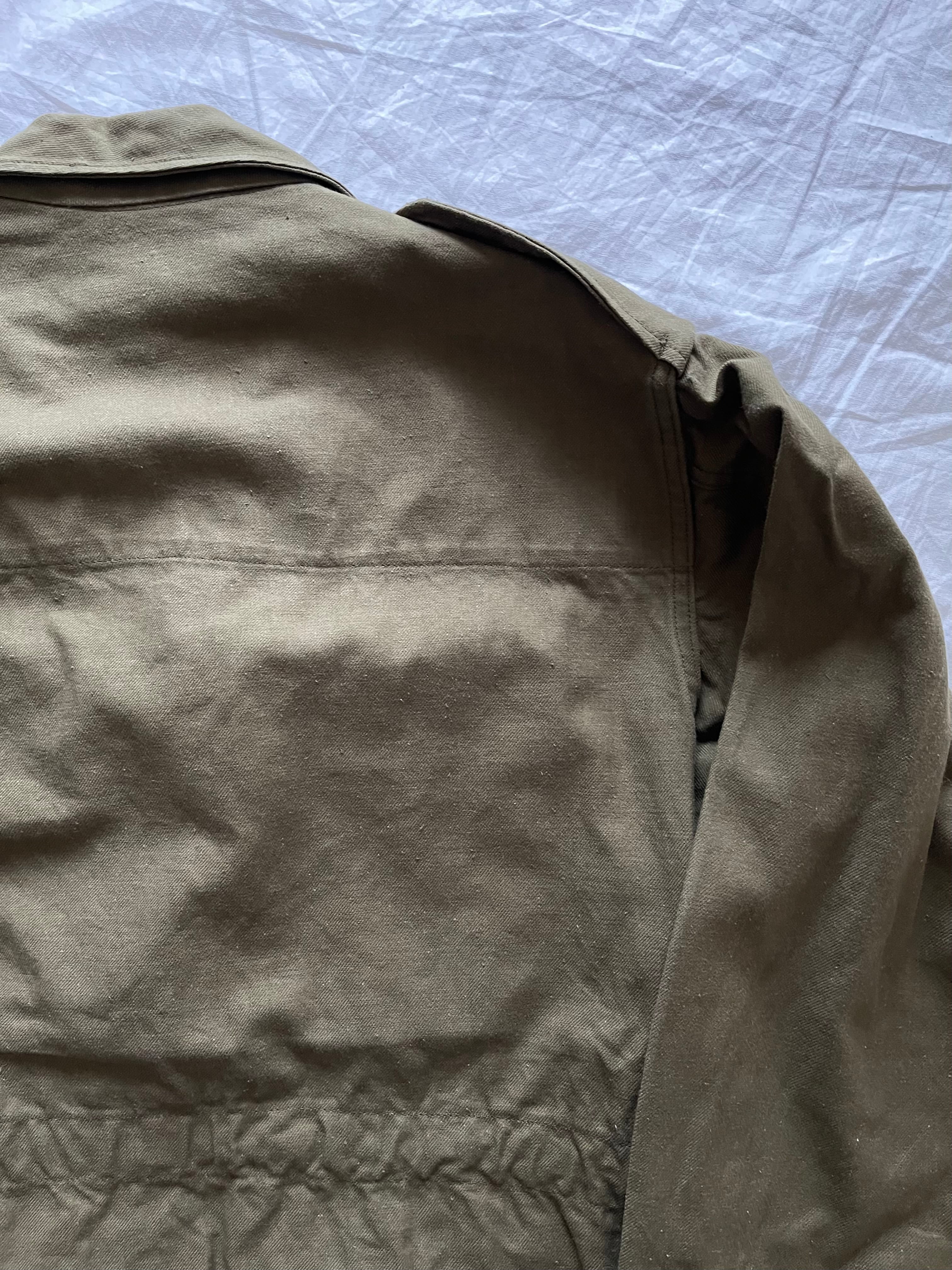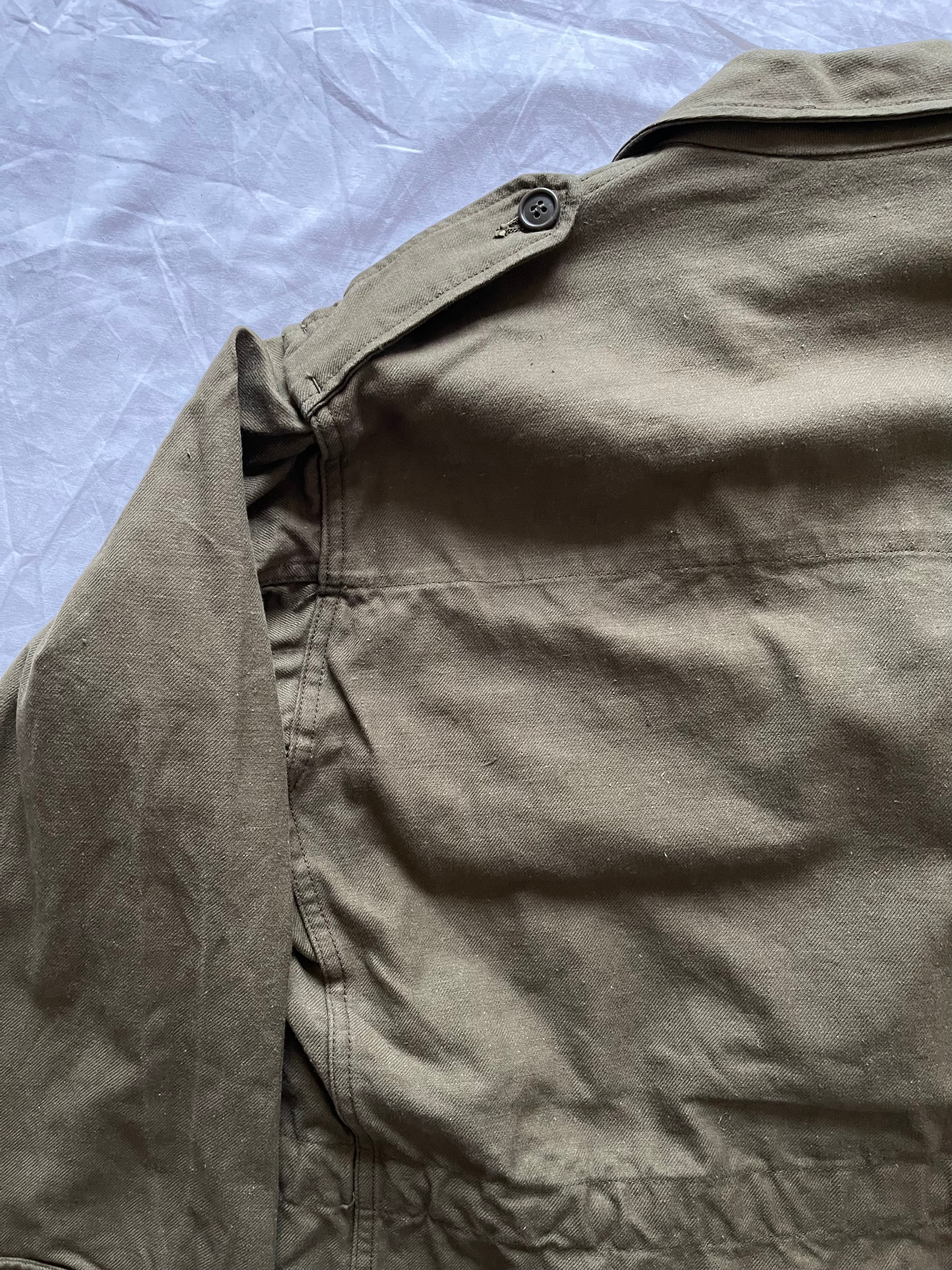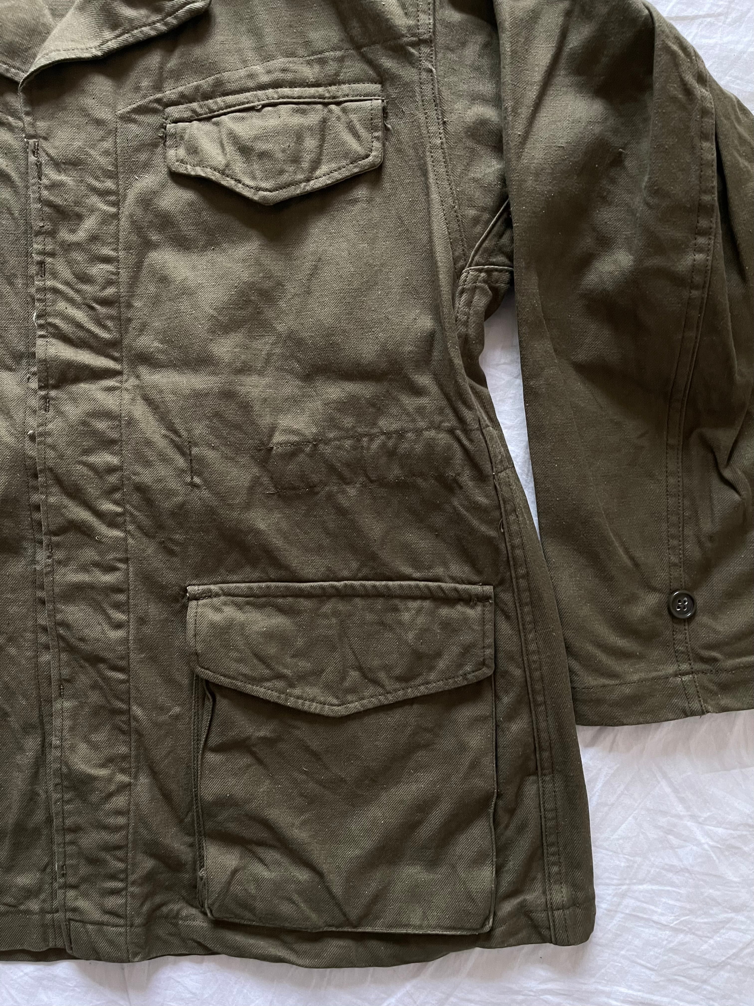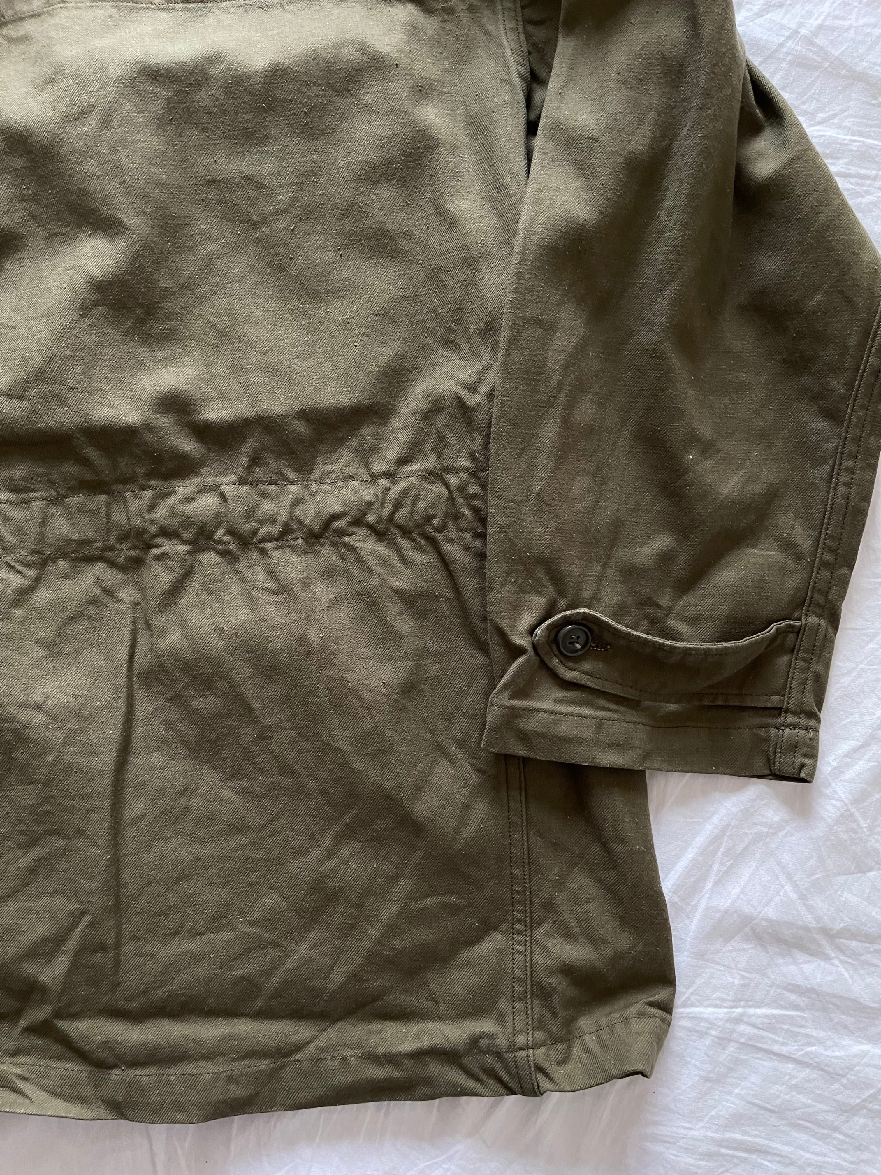 フロントは比翼式でフラップポケットが4つ、袖先にはサイズ調整のできるフラップがあります。