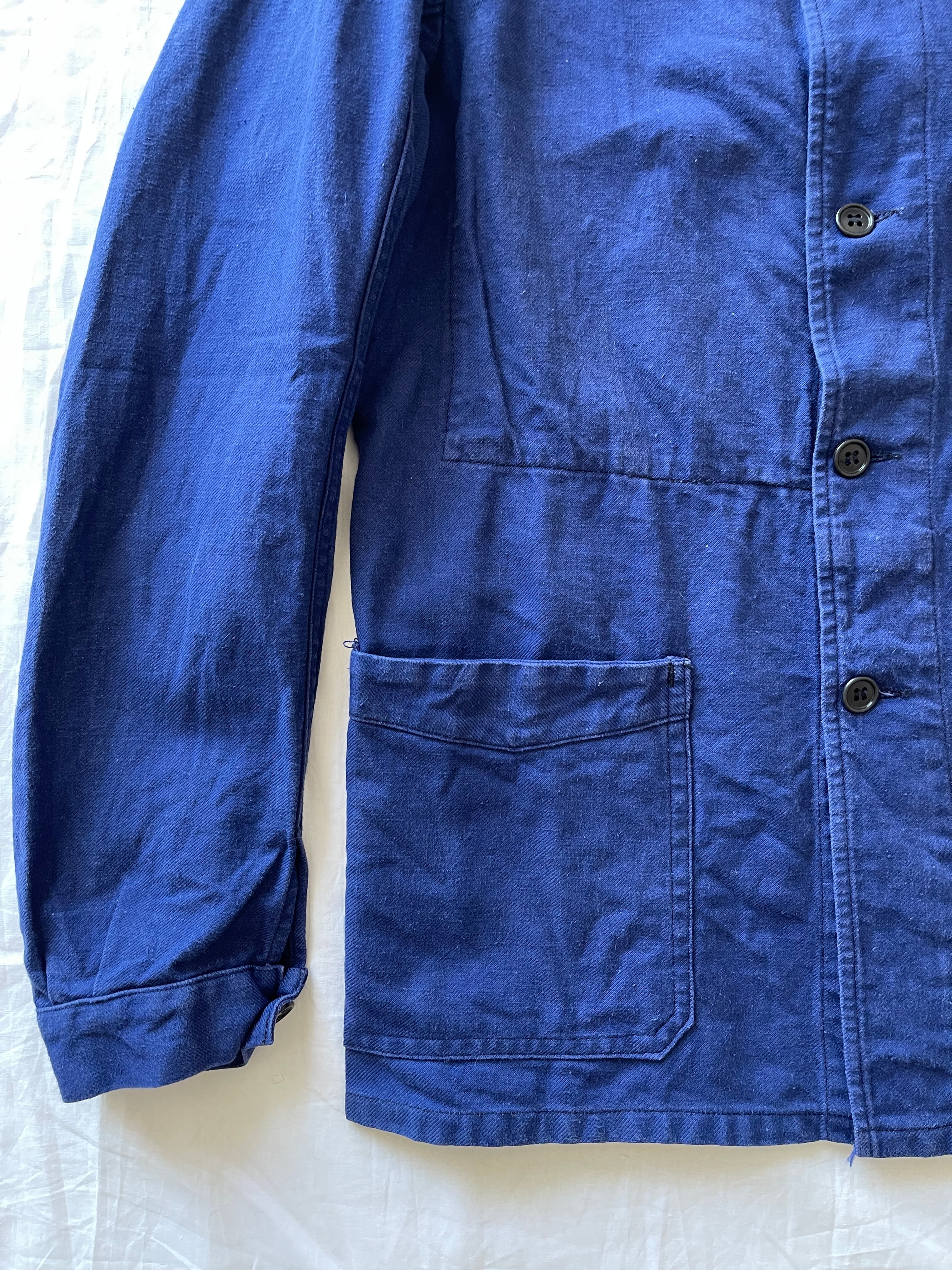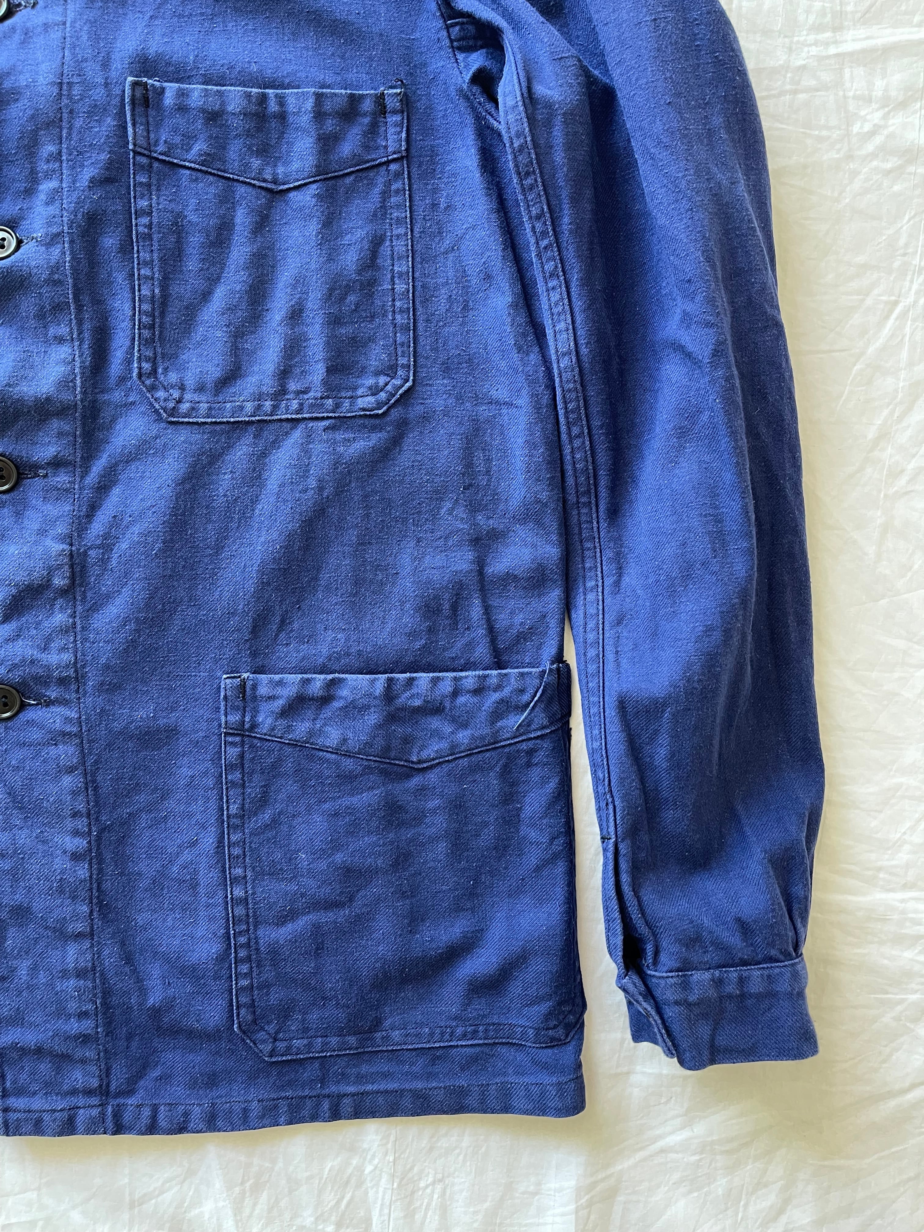 フェードされたブルーカラーのジャケット。着用すると雰囲気がグッと上がります。フロントに3つポケット。ヘムもV型で嬉しいところ。