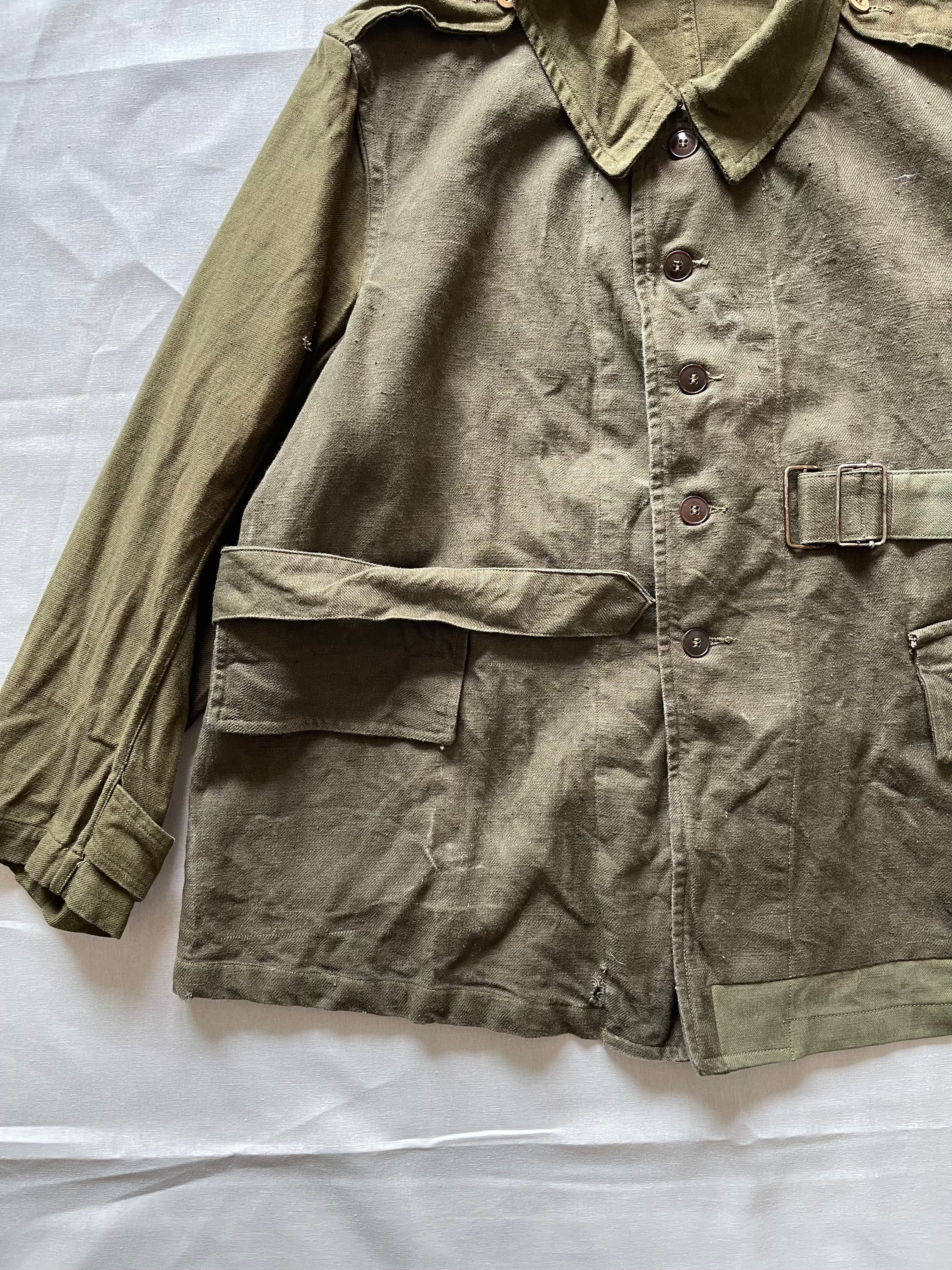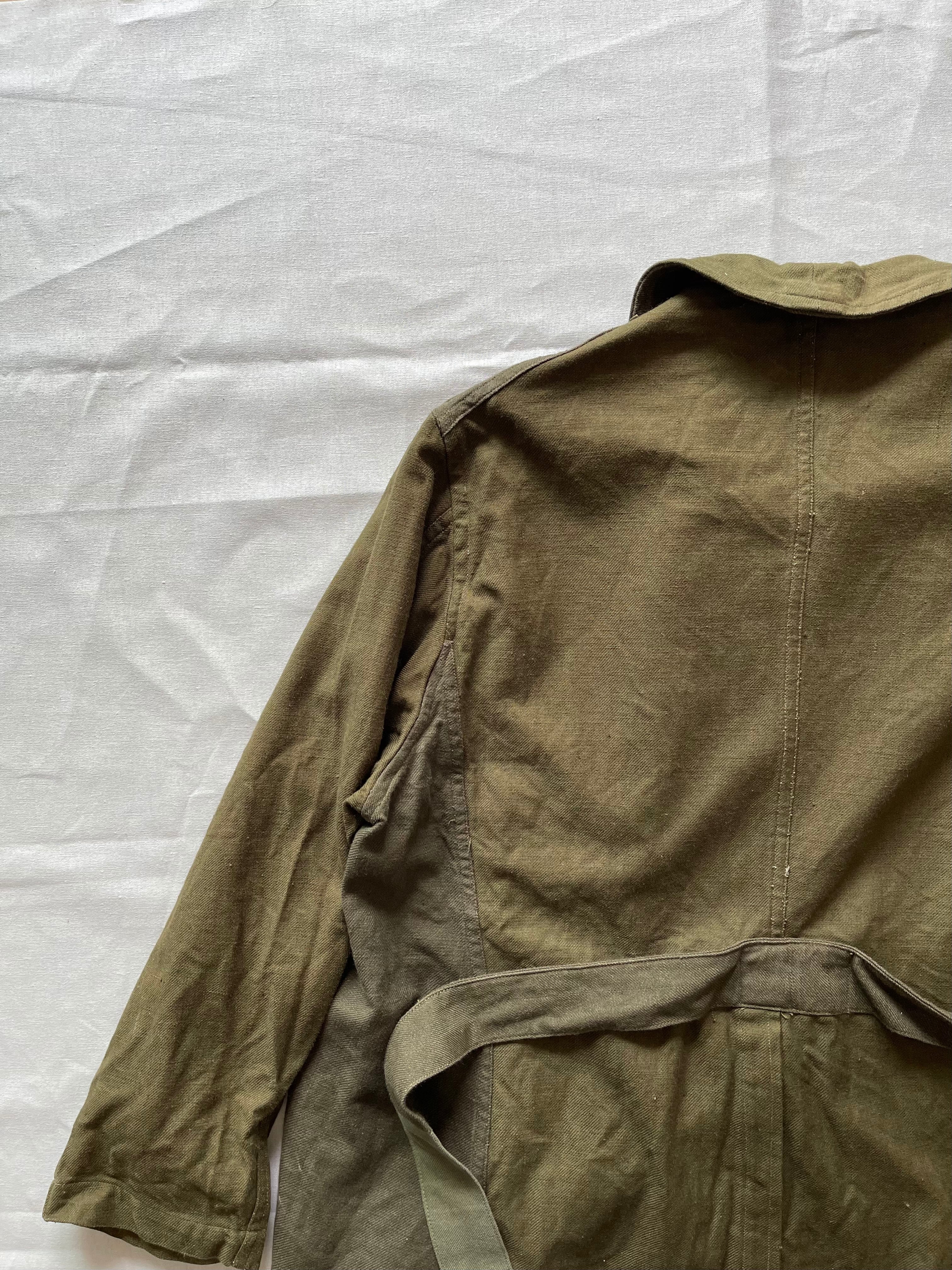 しかも2つの生地が使われている変わり種のジャケットです。袖、脇、背面とオリーブカラーのファブリック。