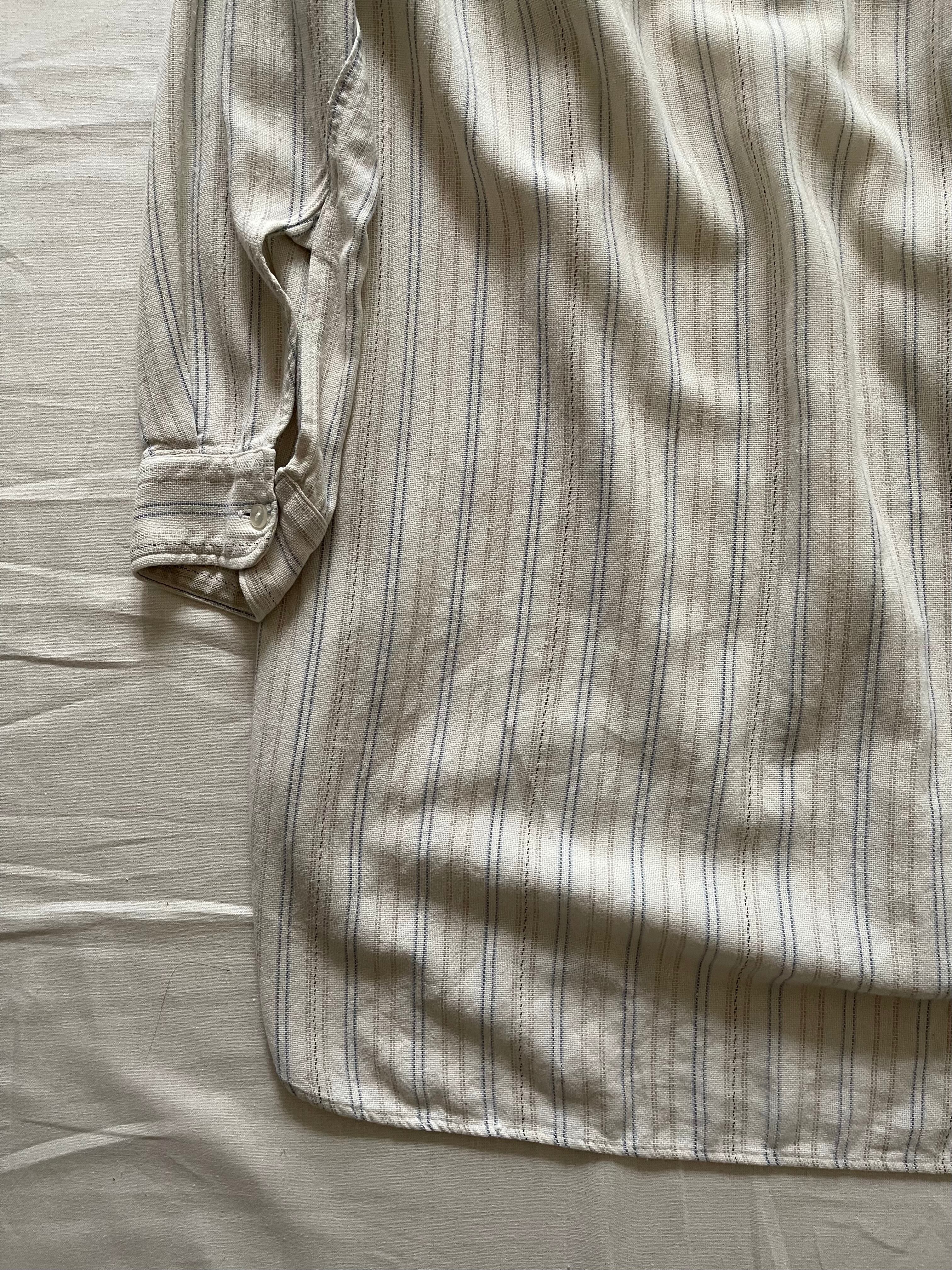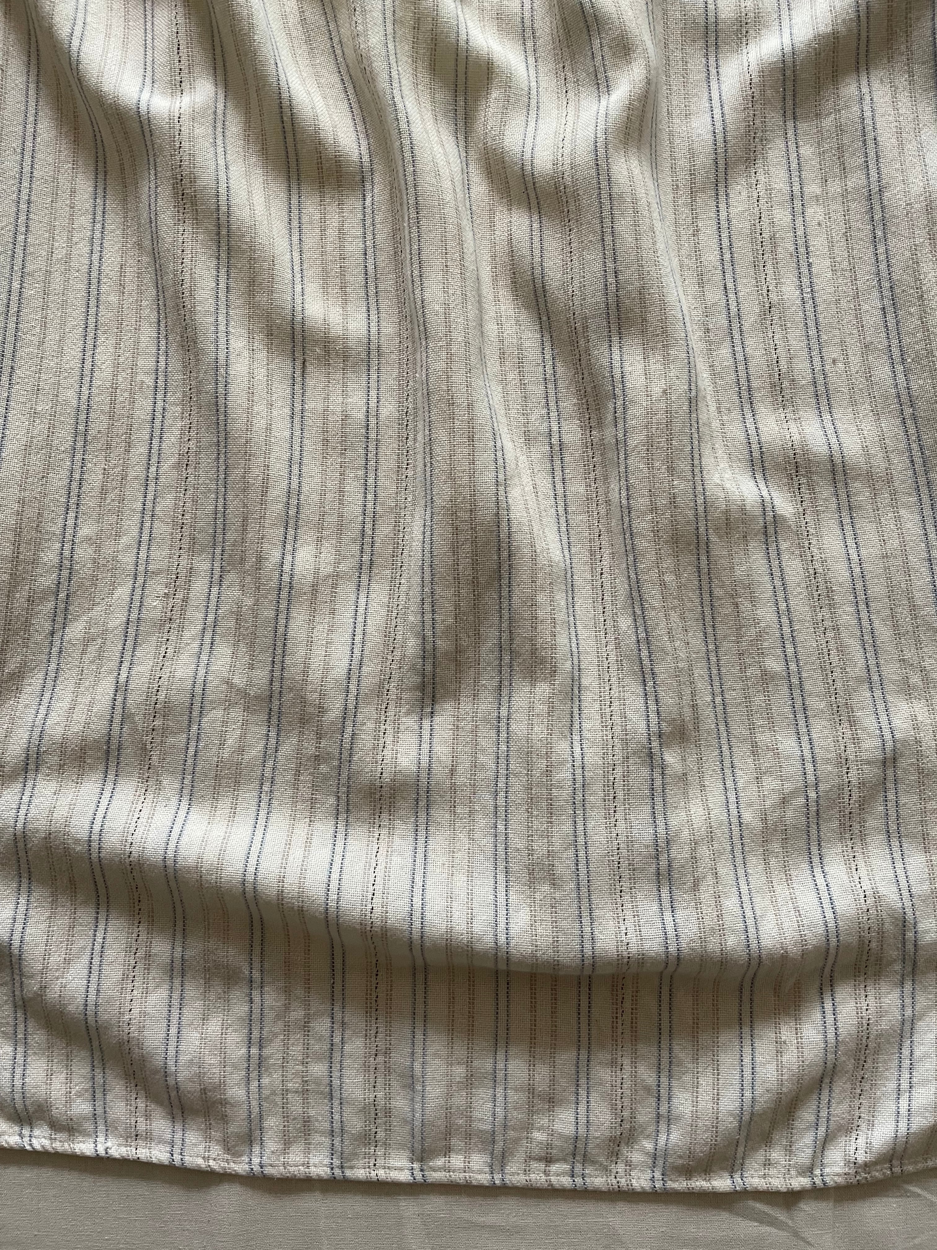 ブルーやブラウンの色味の入ったストライプ柄。生地はコットン、フランネル生地のような柔らかい生地感です。