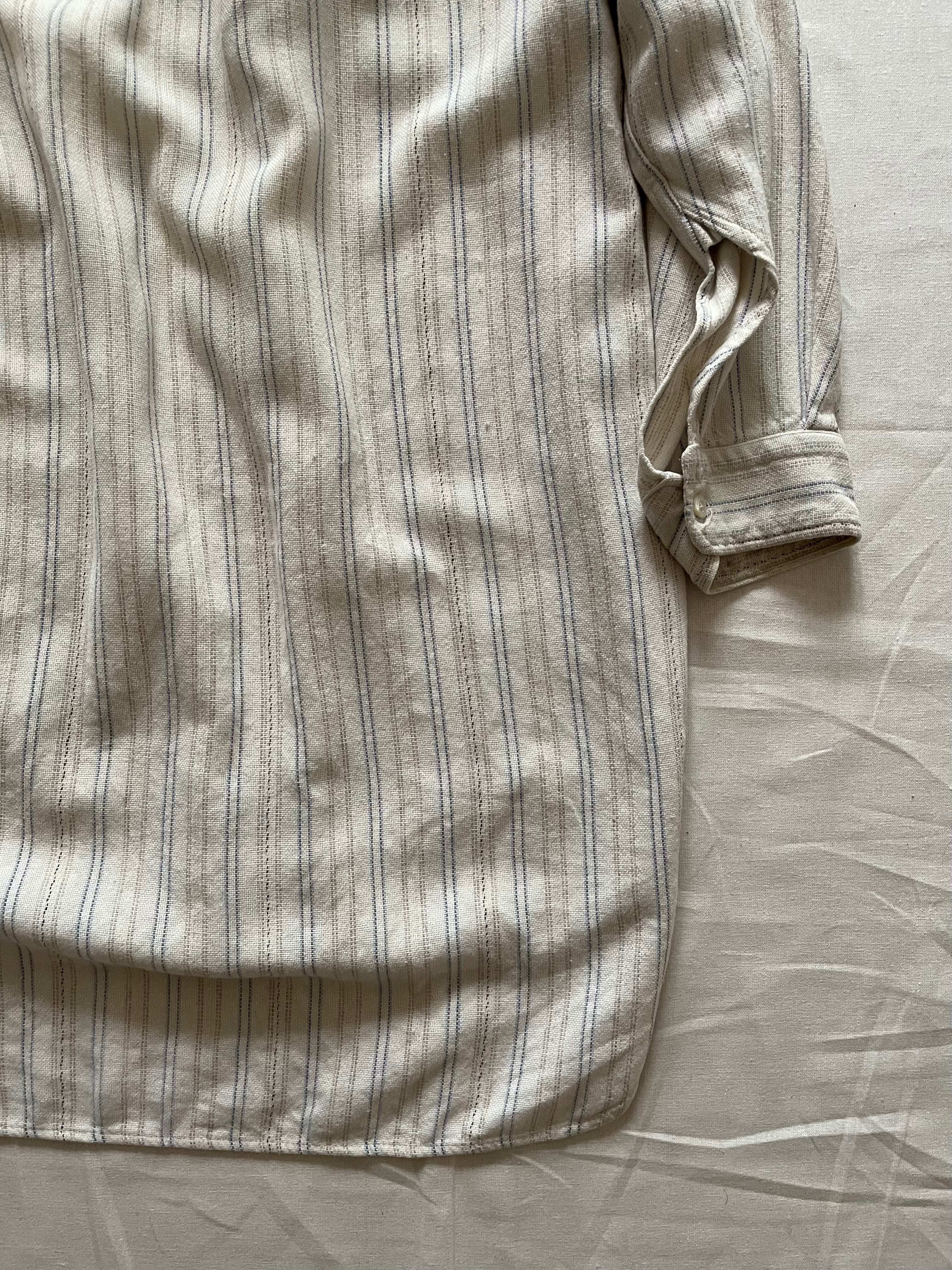 生成りのカラーが際立っていますので、コーディネートしやすいシャツだと思います。