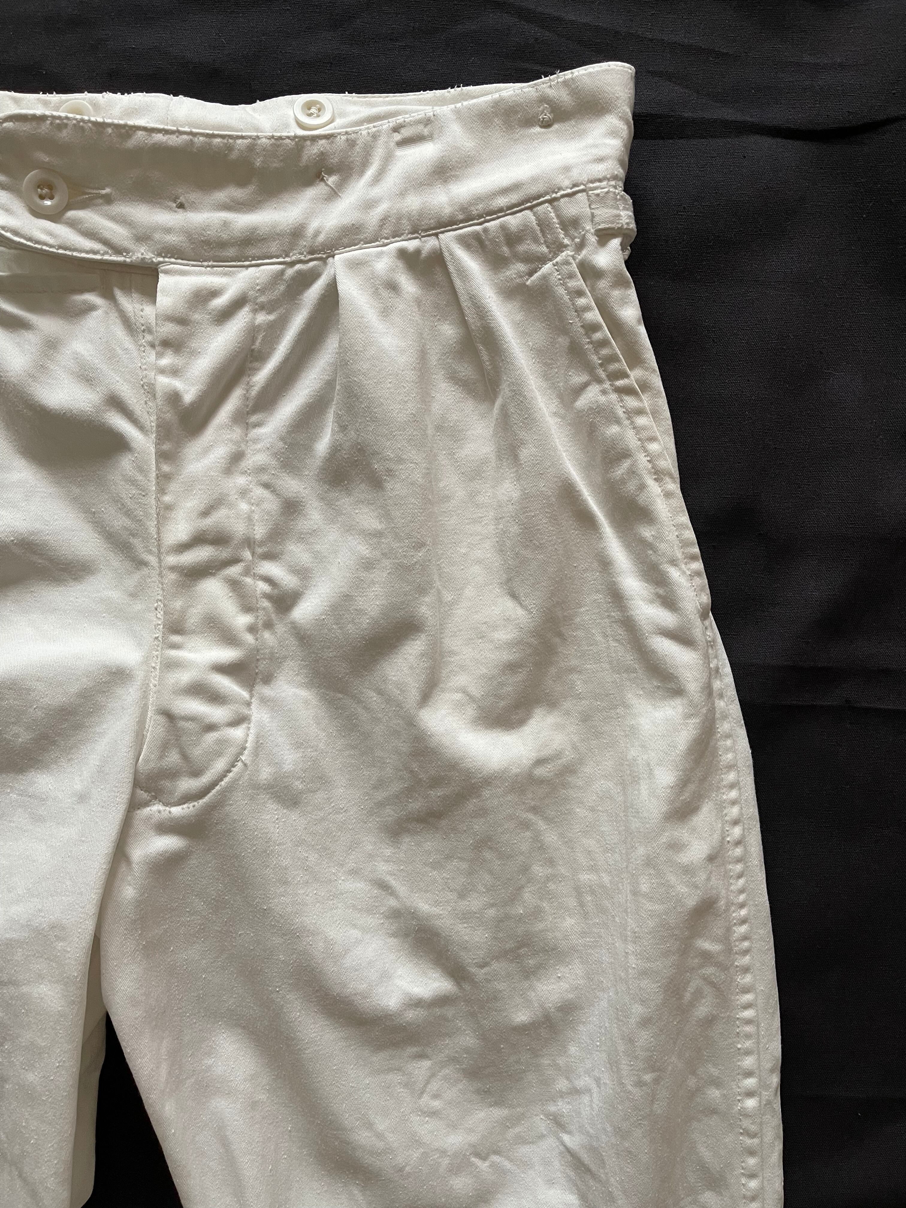 スコットランド連隊のパンツと言えば、タータンチェックのウールパンツですが、コットンの白いパンツはなかなかお洒落です。