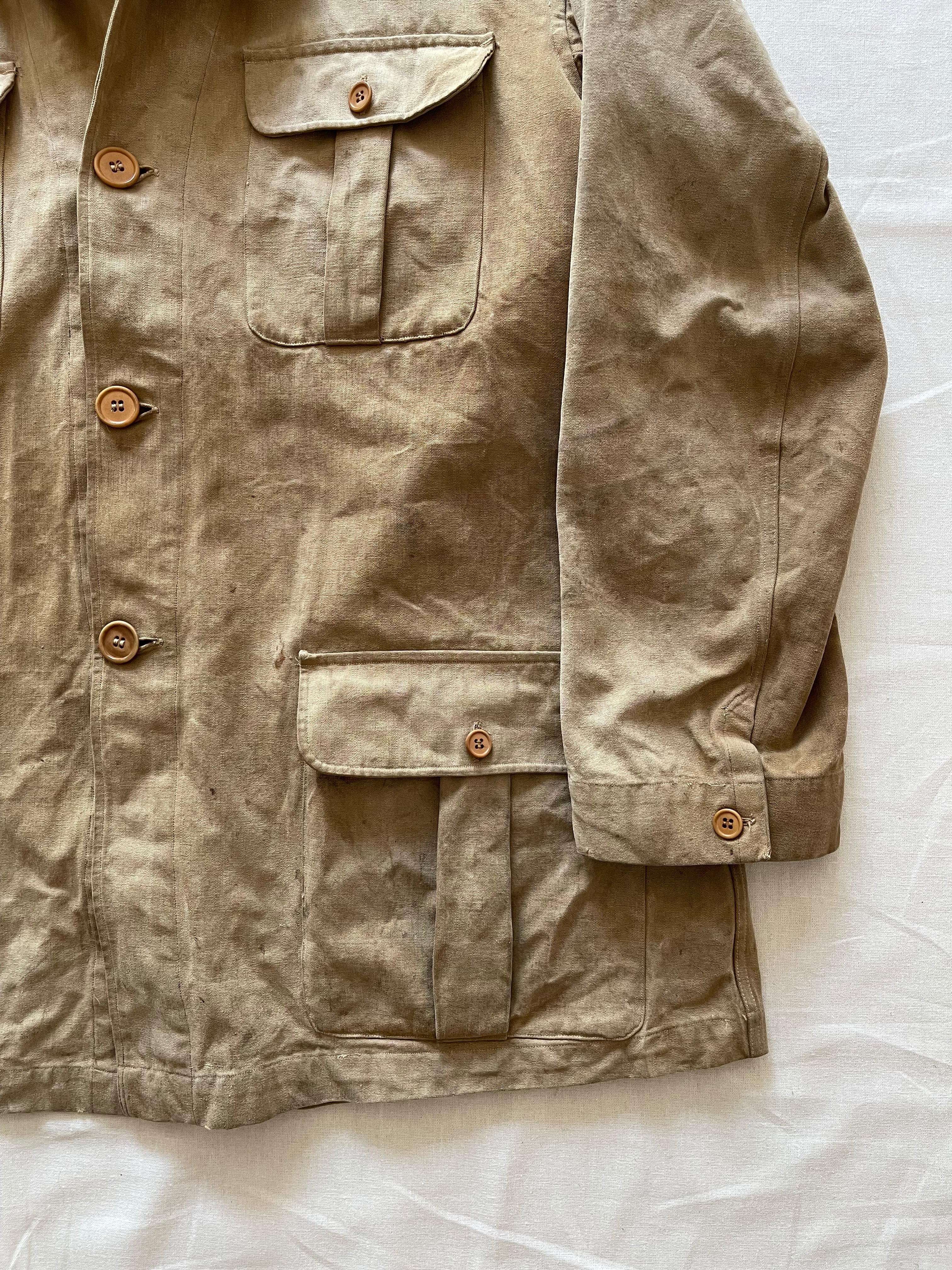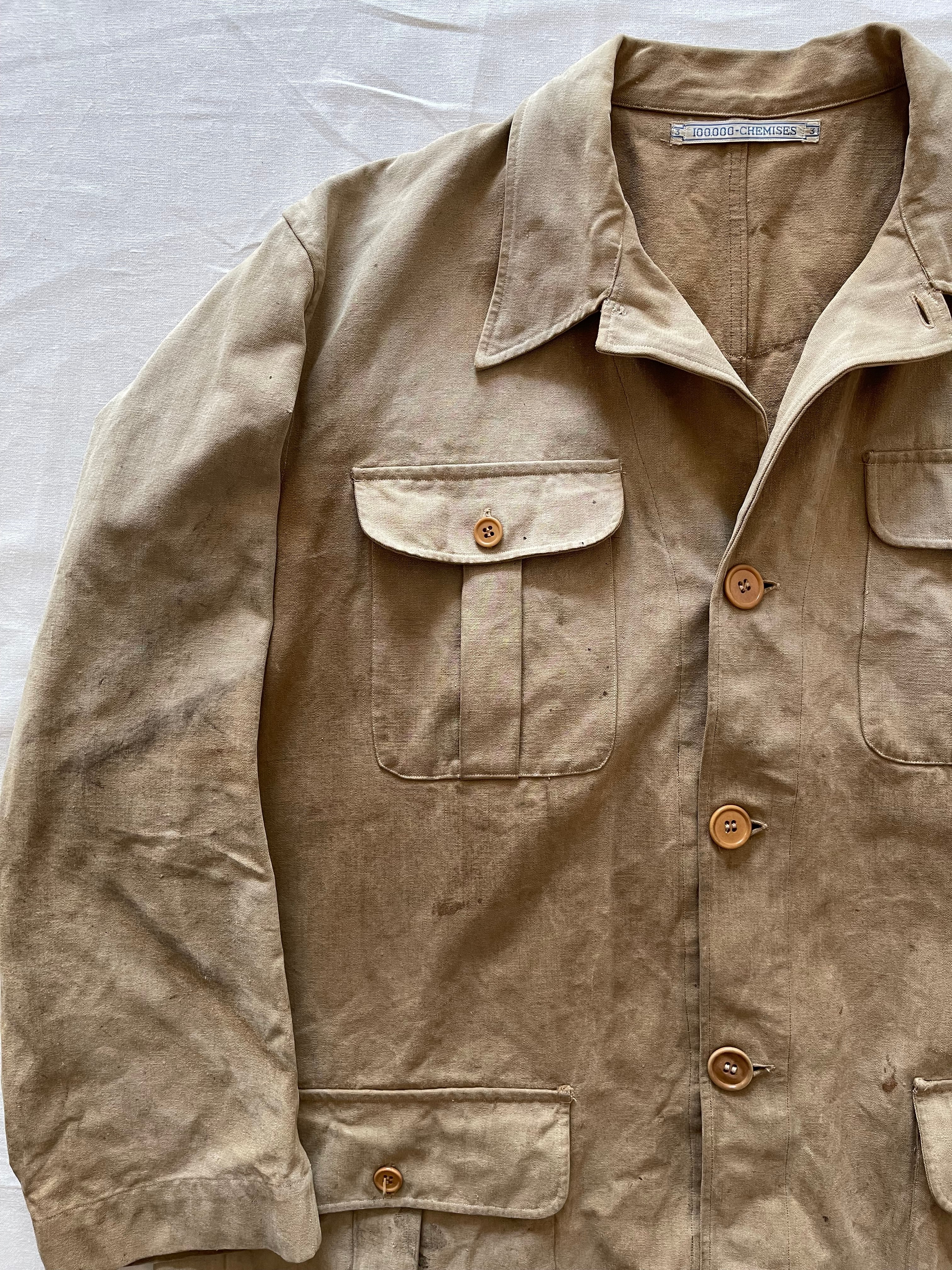 フランス製の古いコットンキャンバス ハンティングジャケットになります。