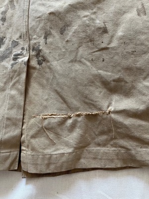 ボタンは付け替えられている物もありますが古いボタンが使われています。色味もカーキ色なのでジャケットに馴染んでいます。