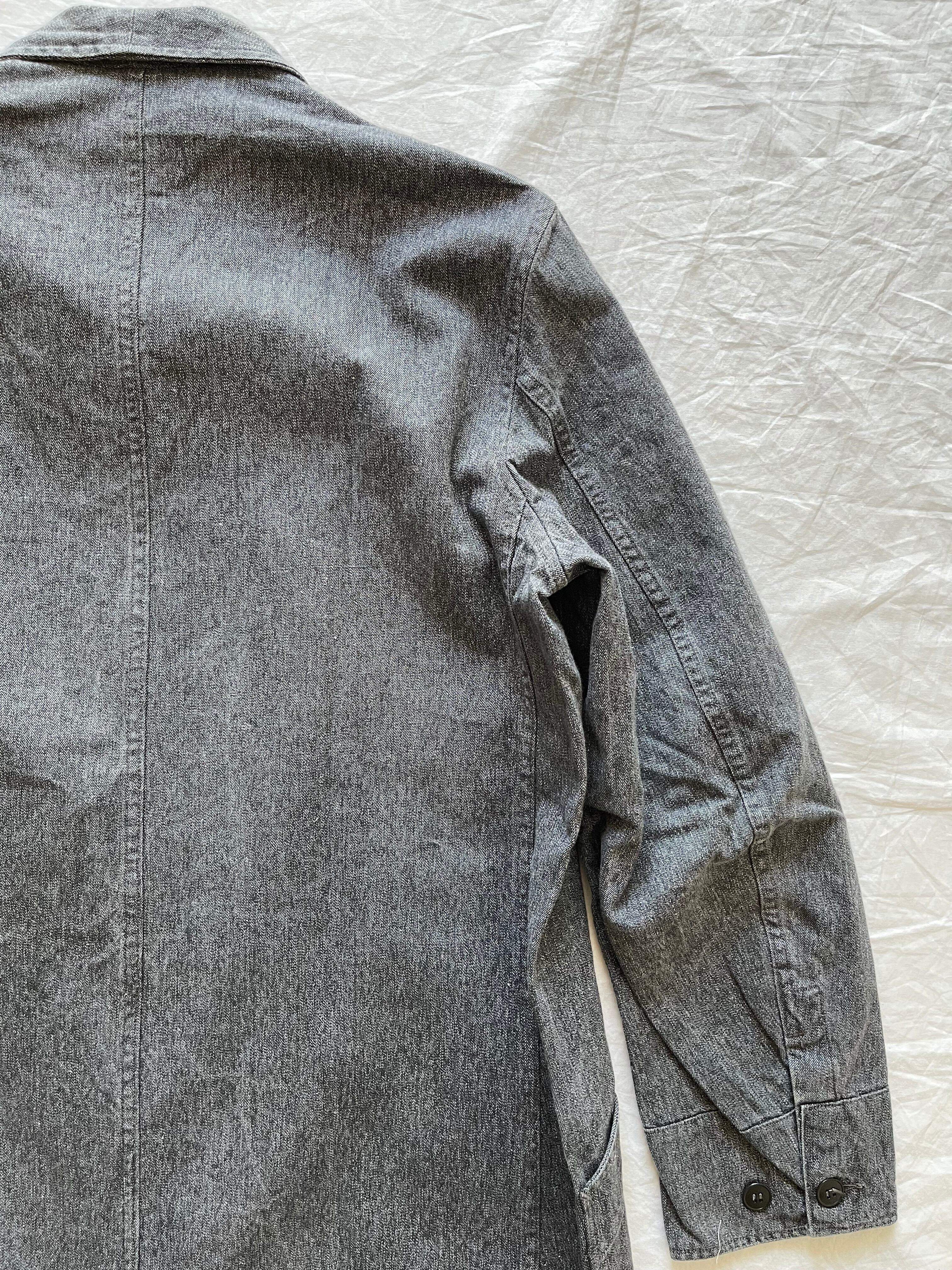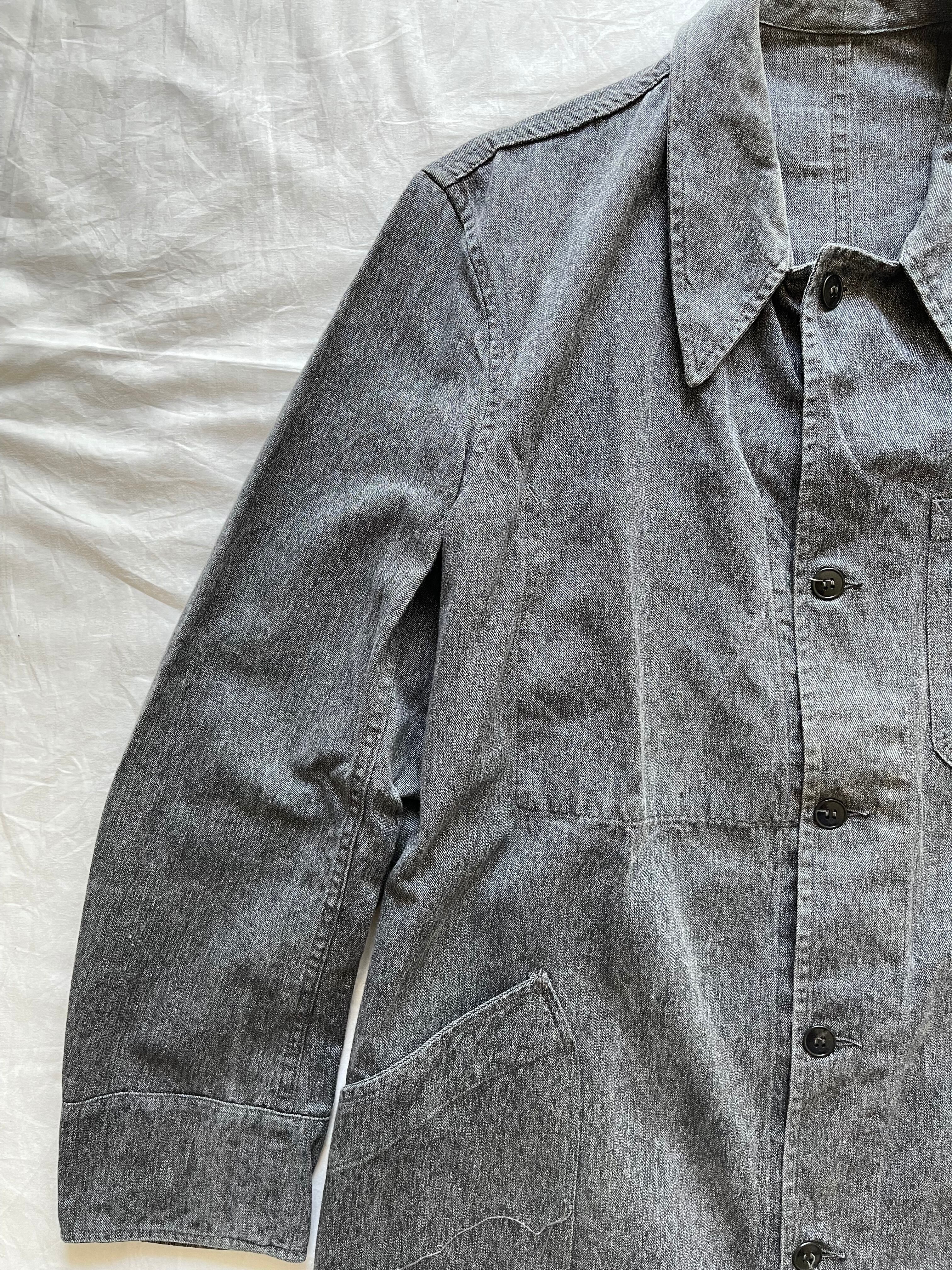 フランスのワークコートは、ワーカーズジャケット(Workwear Jacket)としても知られています。これは元々労働者が作業中に着用するためにデザインされたジャケットで、丈夫な素材と機能的なデザインが特徴です。