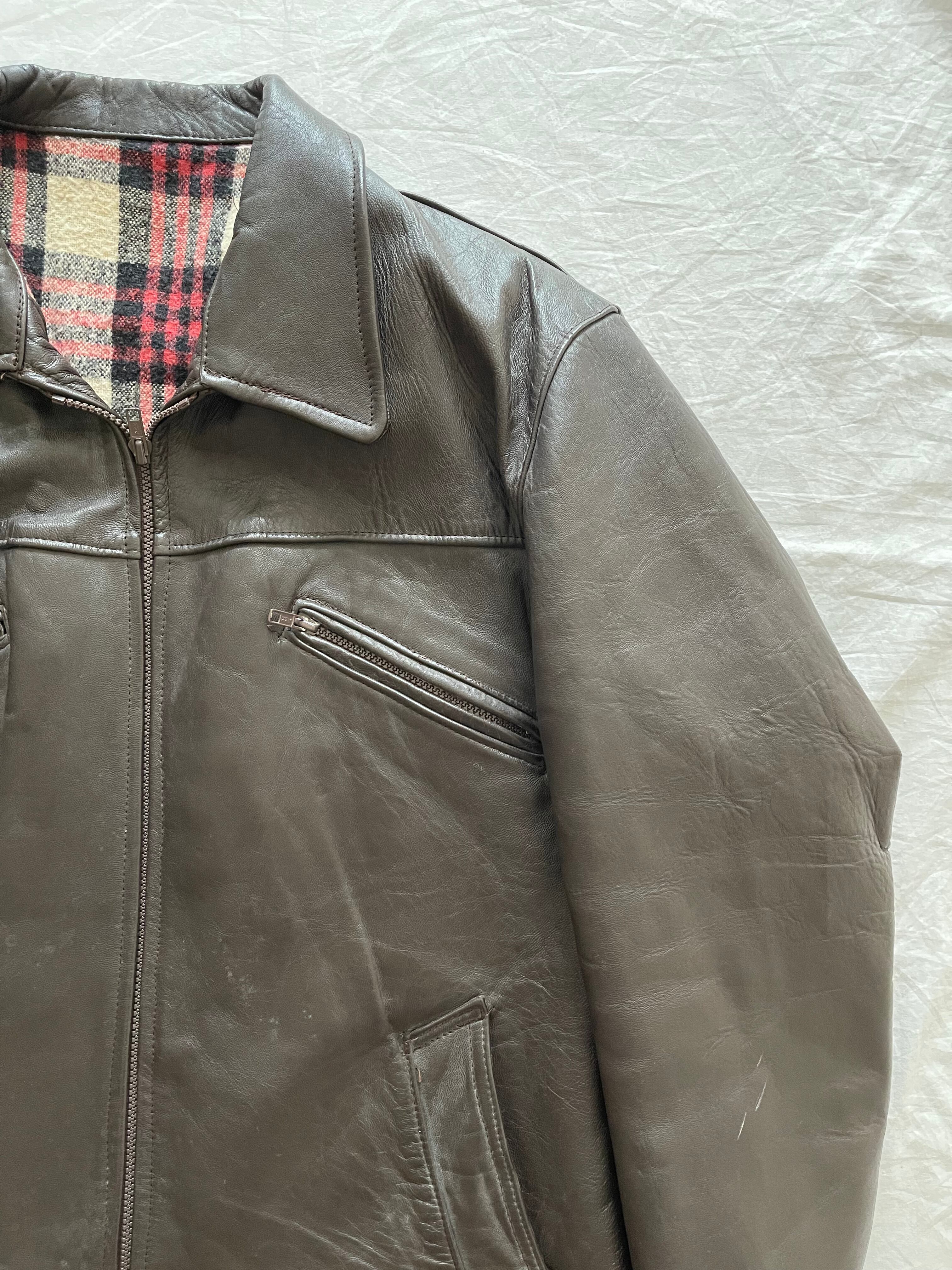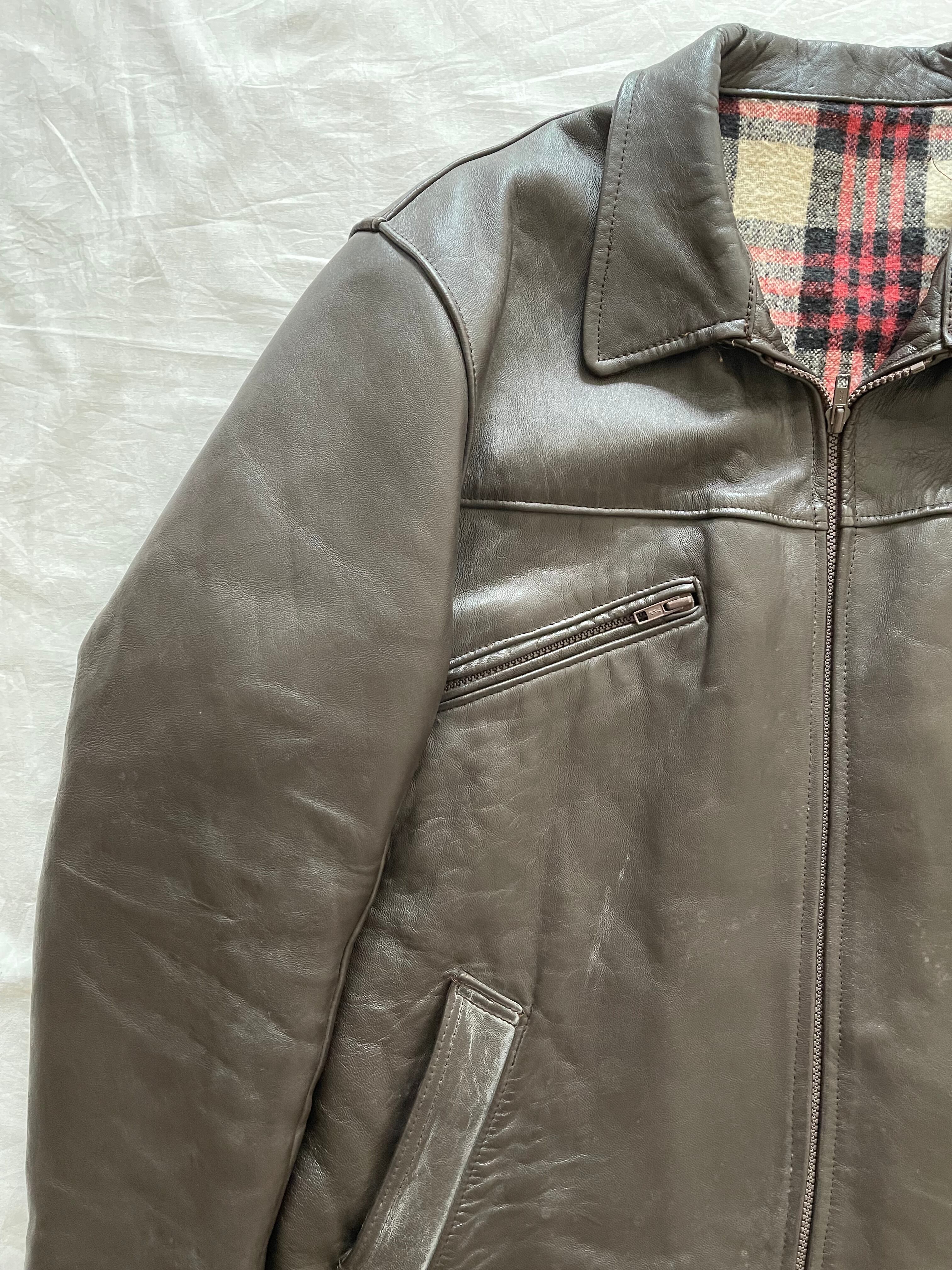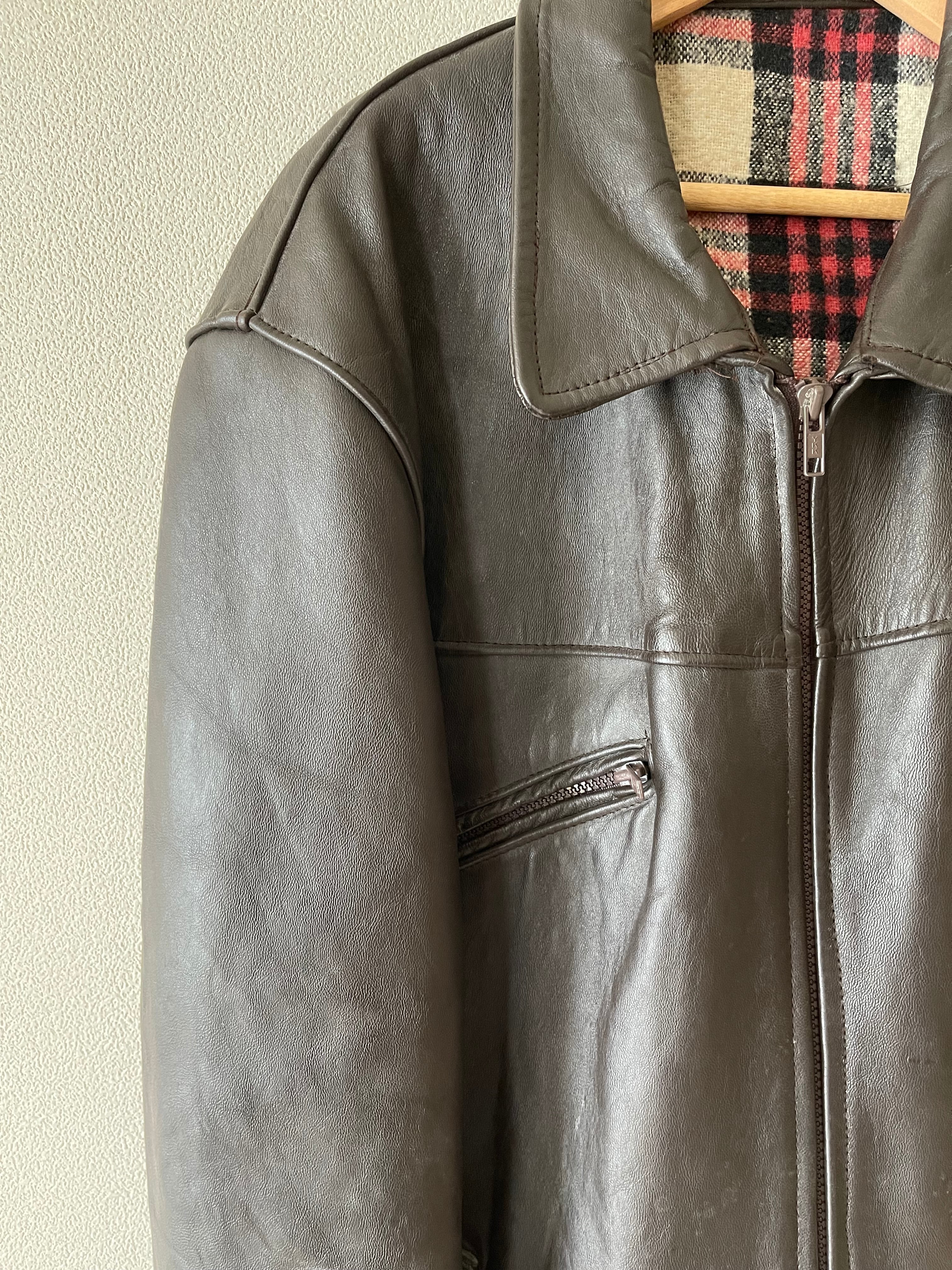 60's French vintage Brown Leather Jacket