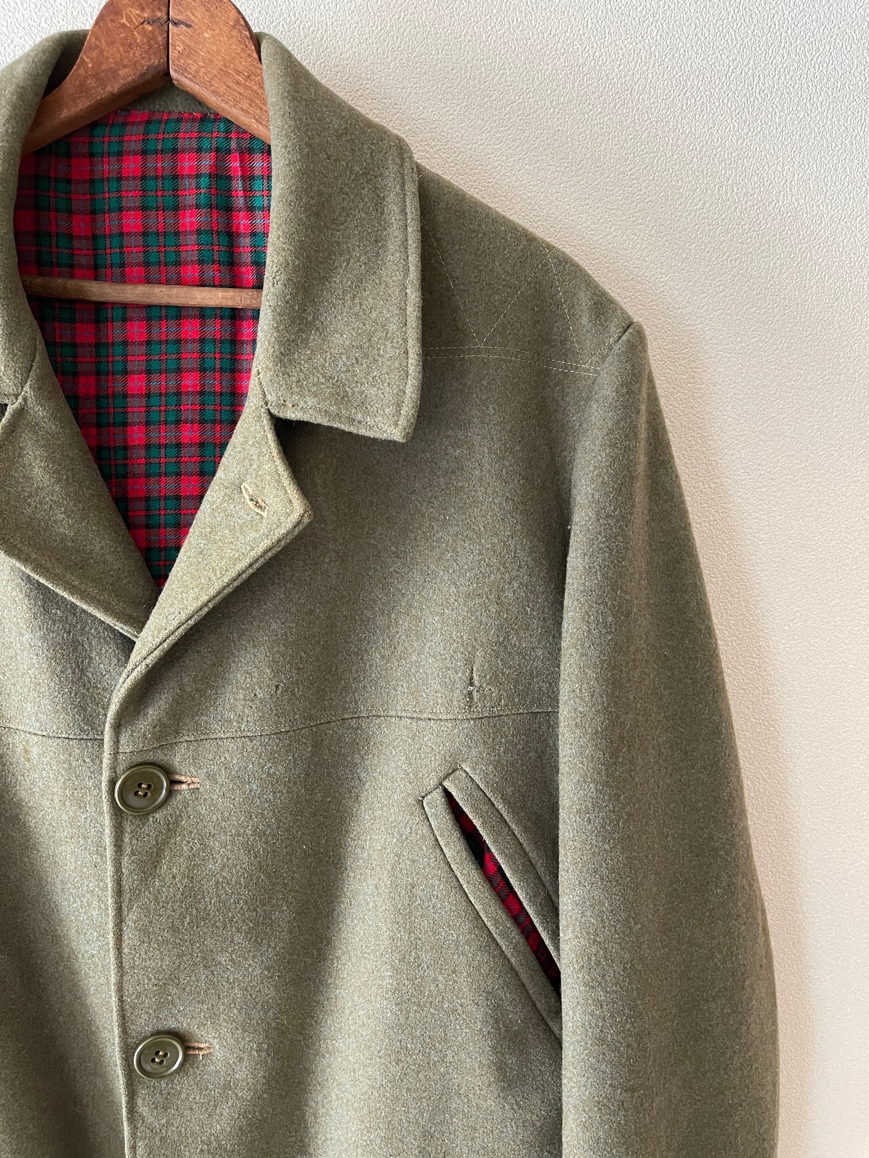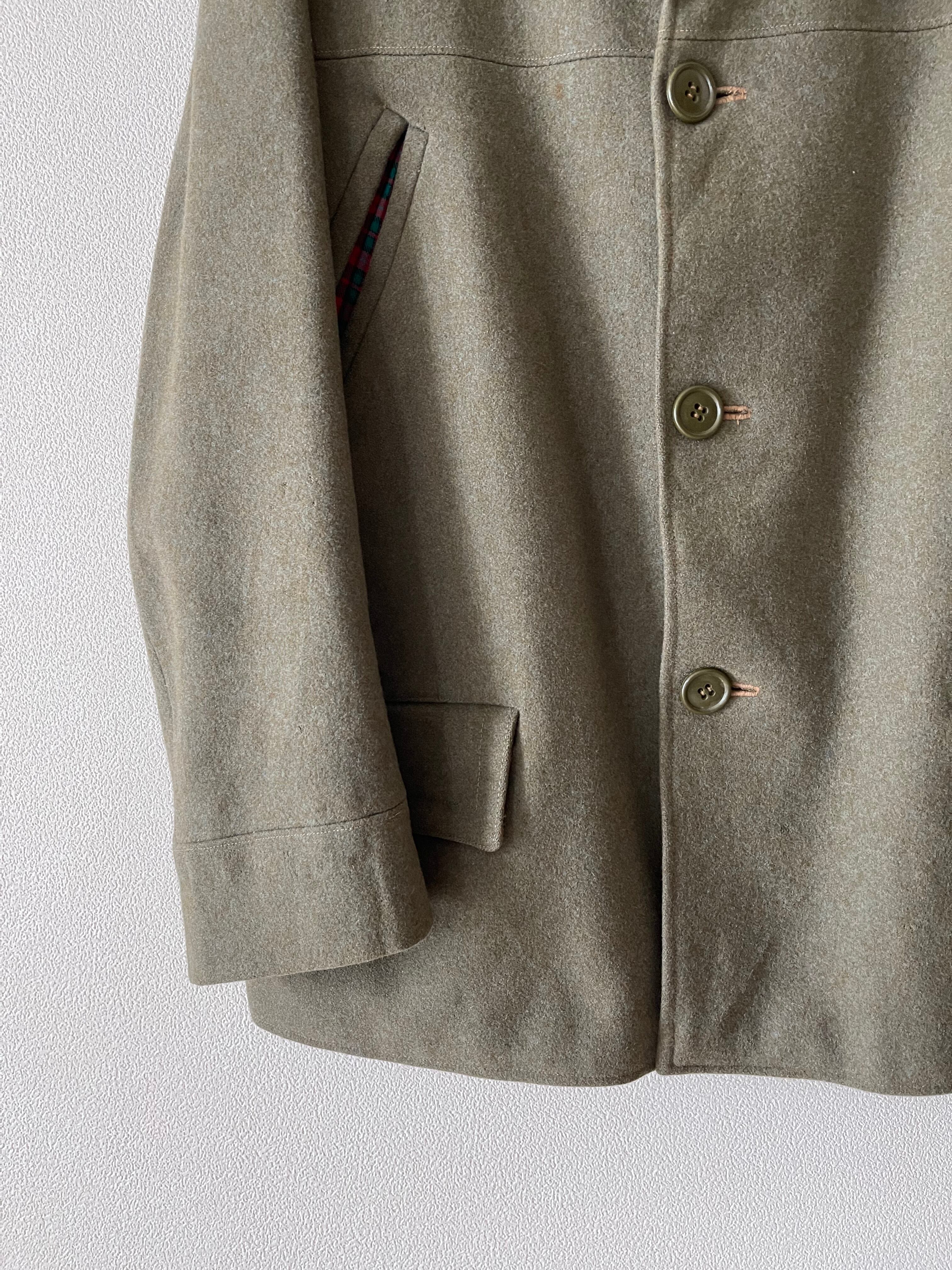 ローデンウールのような目の詰まった生地。形の良いラペル、フロント上部にはハンドウォーマーポケット、もちろんバックにはゲームポケット付き。