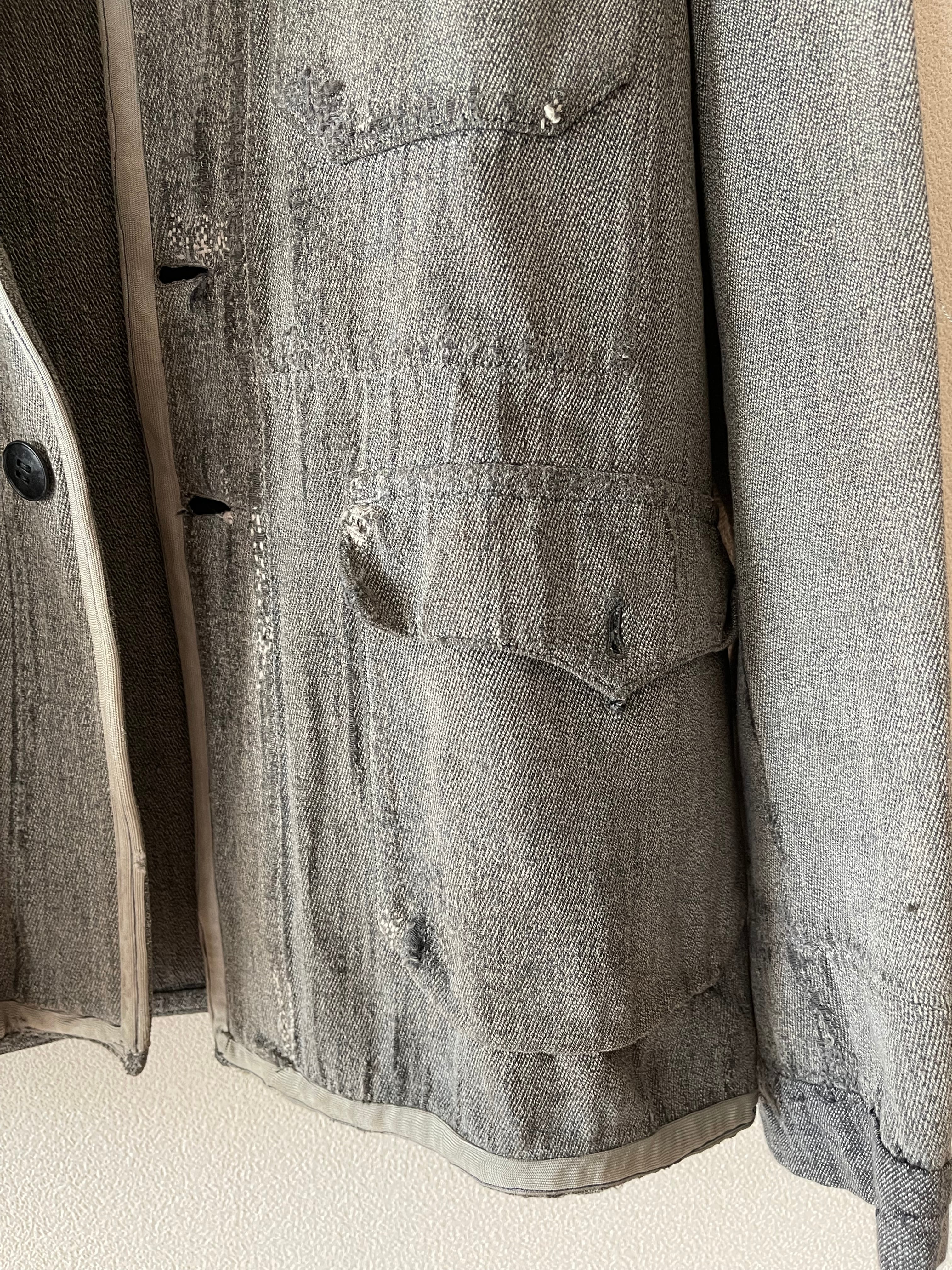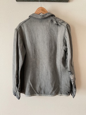 着用感はしっかりと肩に乗り綺麗なシルエットのジャケットです。シャンブレーの色目なので、特にパンツやインナーのカラーを選ばない着用しやすいジャケットではないでしょうか。