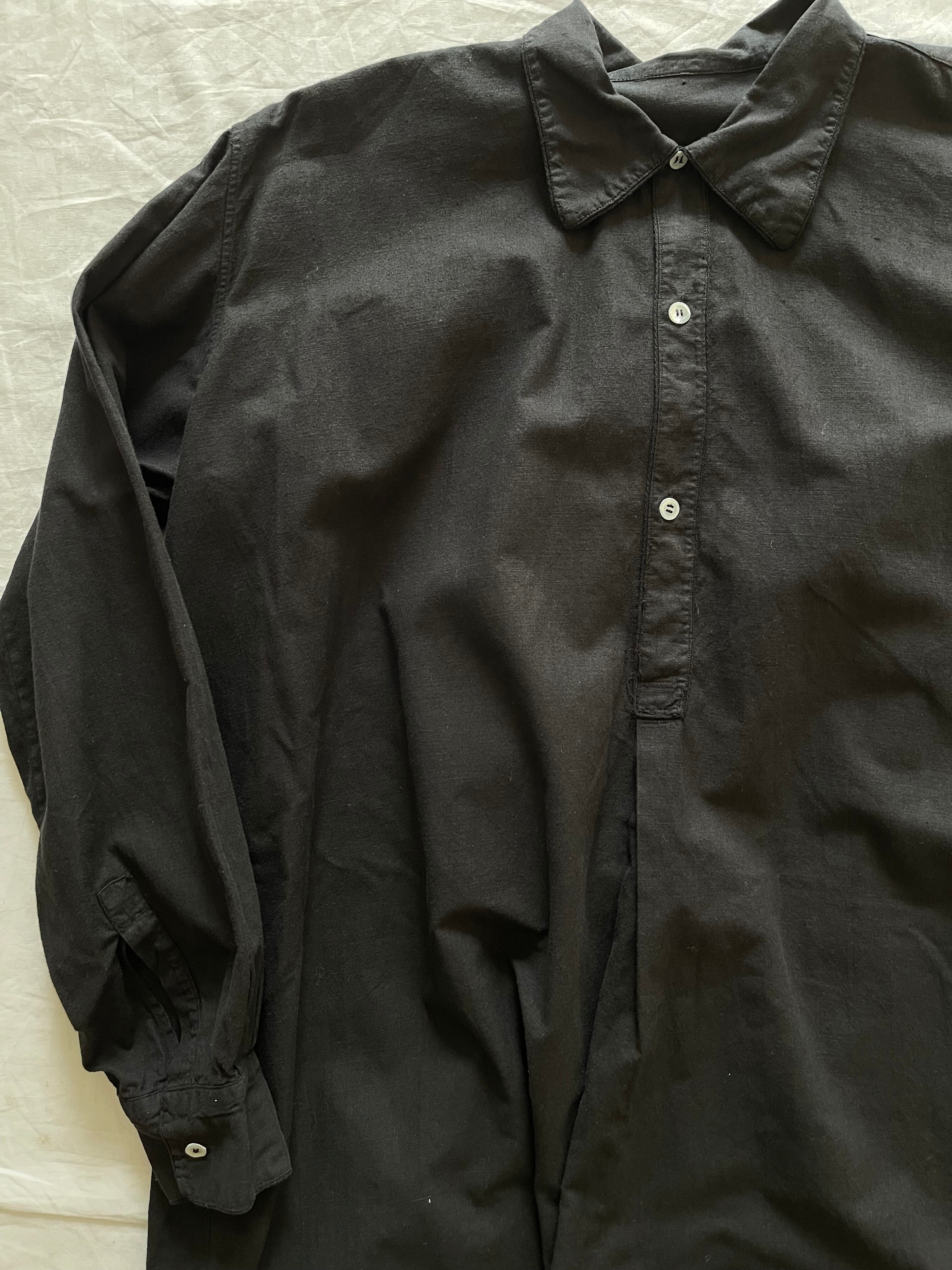 やや丸みを帯びた襟、古いボタンなど古いディテールのつまった一着です。