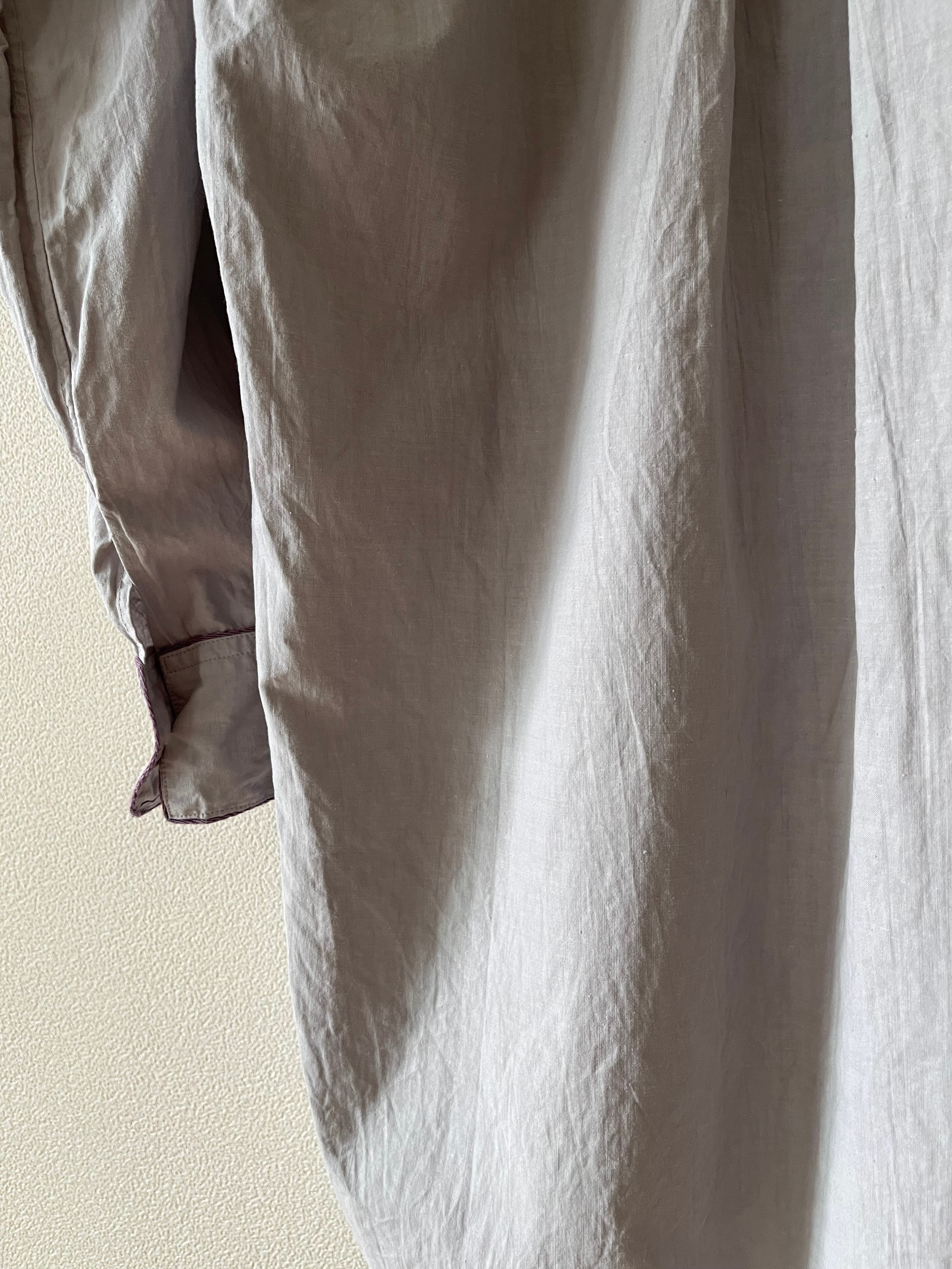 バックのヨーク部分から下にかけて広がるシルエットです。暑い日はこれ一枚でも雰囲気があります。寒い日はコートやジャケットのインナーとしても活躍しそうです。