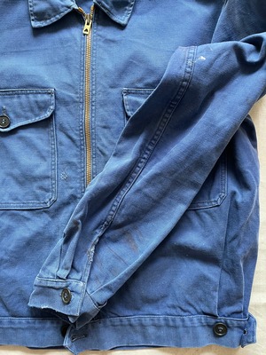 さらにフェードしたコットンツイルの生地が堪らない個体です。ドリル生地のような肌触り。袖に若干の汚れはありますがそれも雰囲気を上げる利点でしょうか。
