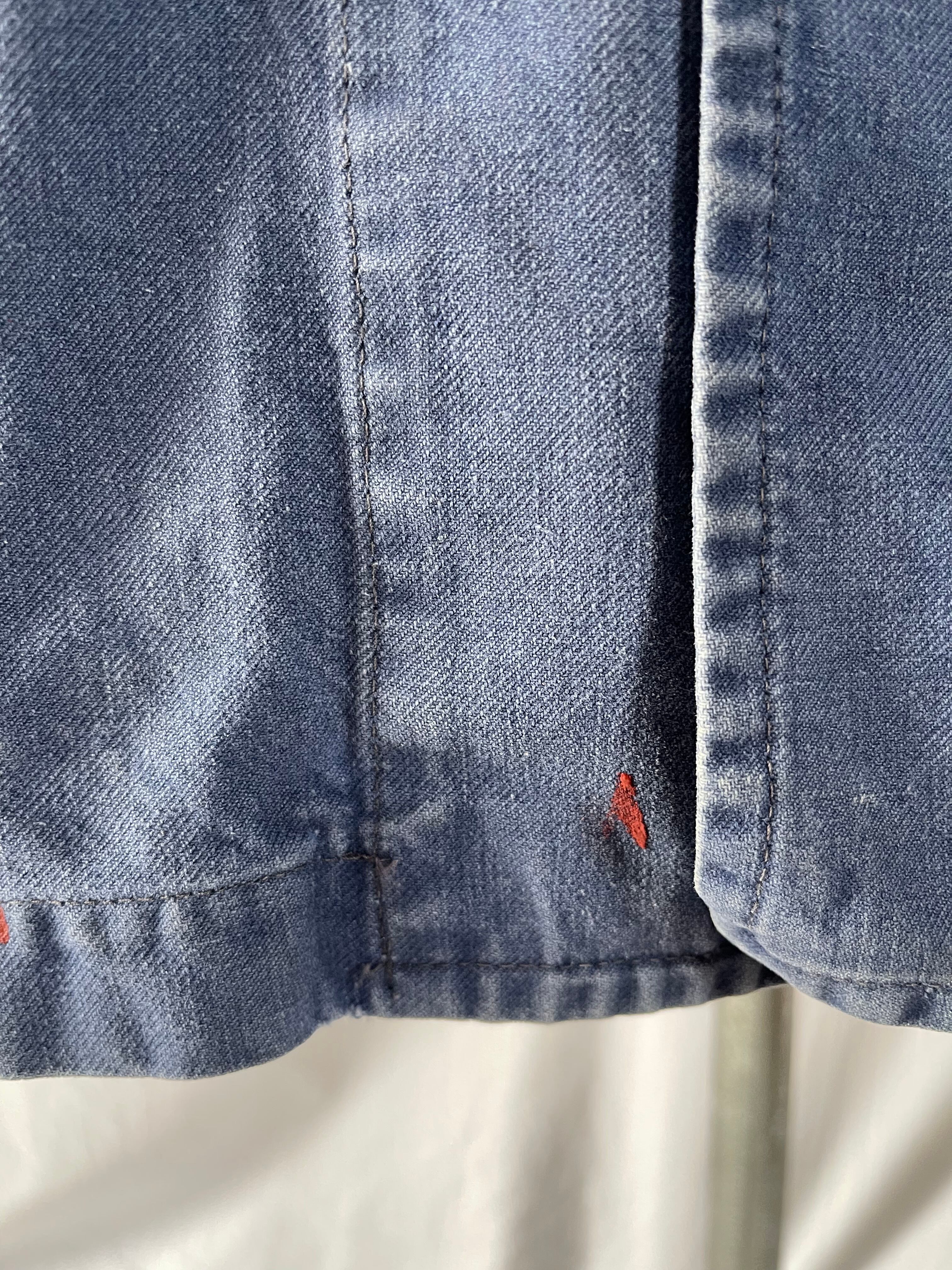 フレンチワークらしい大きな襟が特徴的。フロントには3つのポケット。大きいDポケットで使い勝手は良さそうです。当時のワーカーが小物や工具等を入れていたのかも知れません。